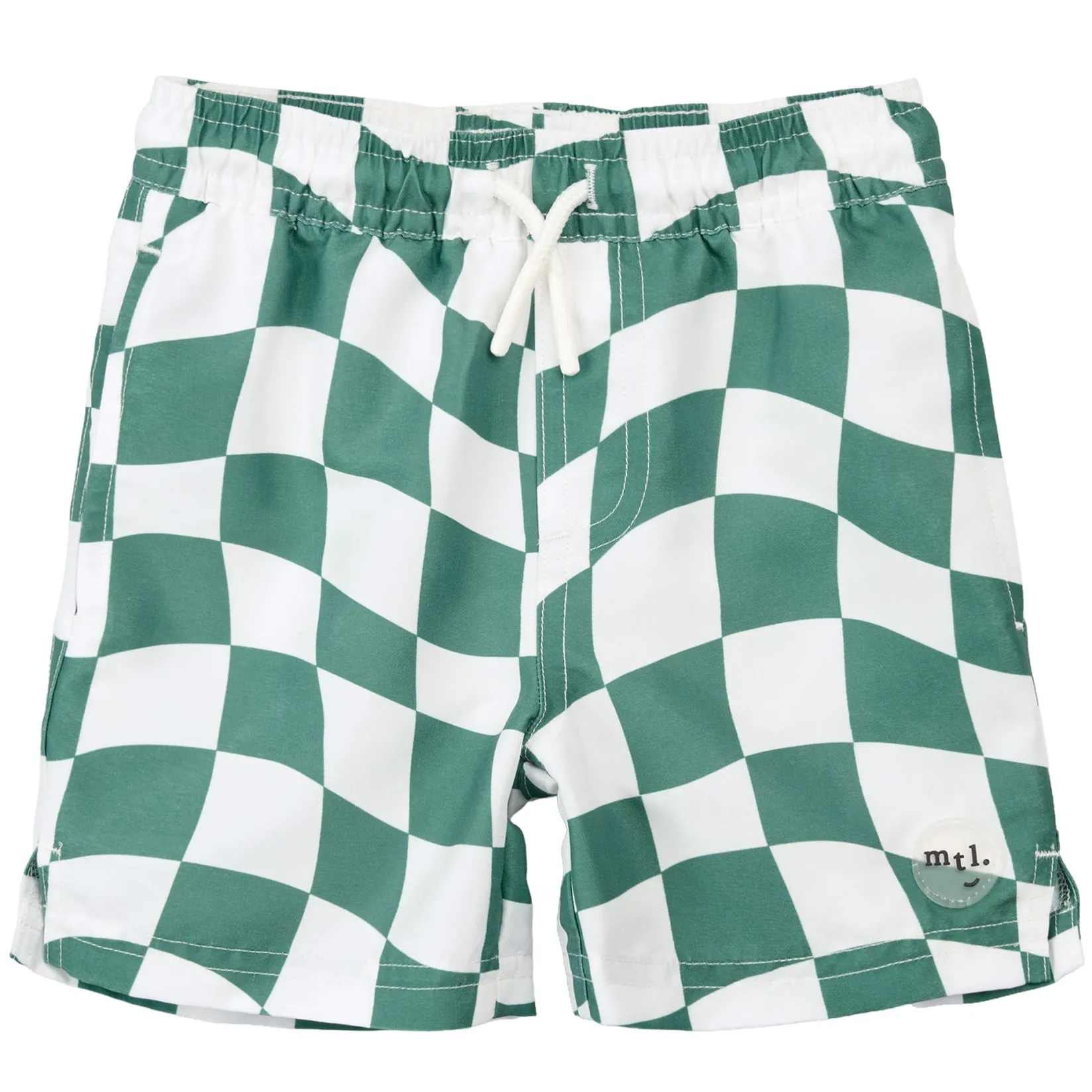 A wavy checkerboard print is the perfect choice for your little skater dude, taking his quirky style to the waves. The quick-drying shorts allow for quick transitioning between beach backflips and breaststroke, keeping him comfortable throughout it all. Elastic in the waistband provides a supportive fit and there’s a drawstring tie to keep the trunks in place.Â