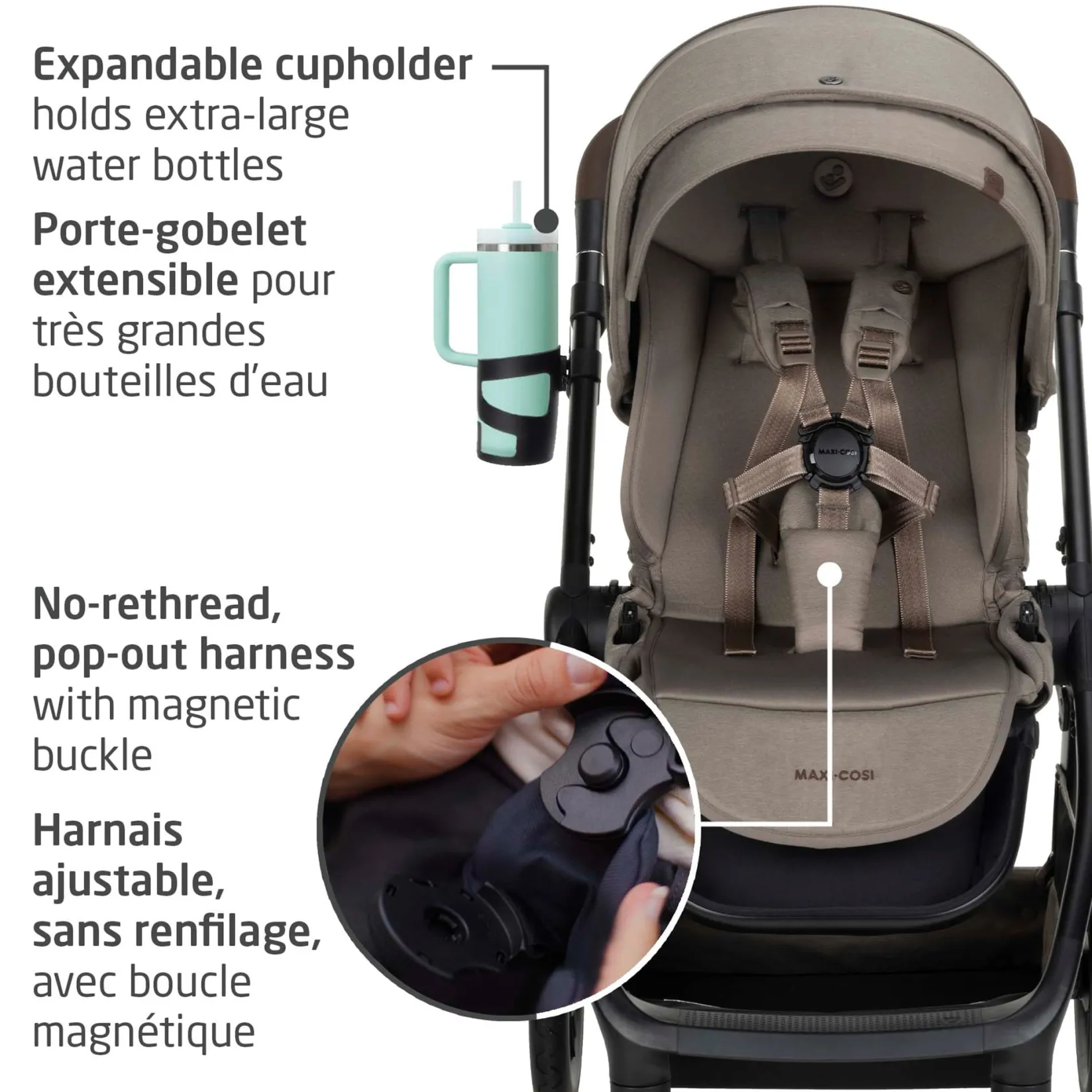-Four modes: world-facing, parent-facing, and transforms into a travel system with the Maxi-Cosi Mico car seat or Oria (both sold separately)