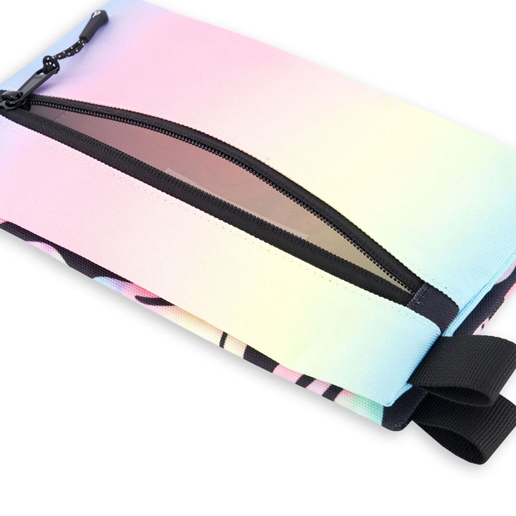 Stash pencils, pens, erasers, and other essential school supplies inside this allover print stationery pouch. Detailed with an allover green cat print, this pencil case features two separate zippered compartments, a convenient grab handle, and a logo patch on the front. Team it with a matching lunch box and school bag for a perfectly coordinated look!