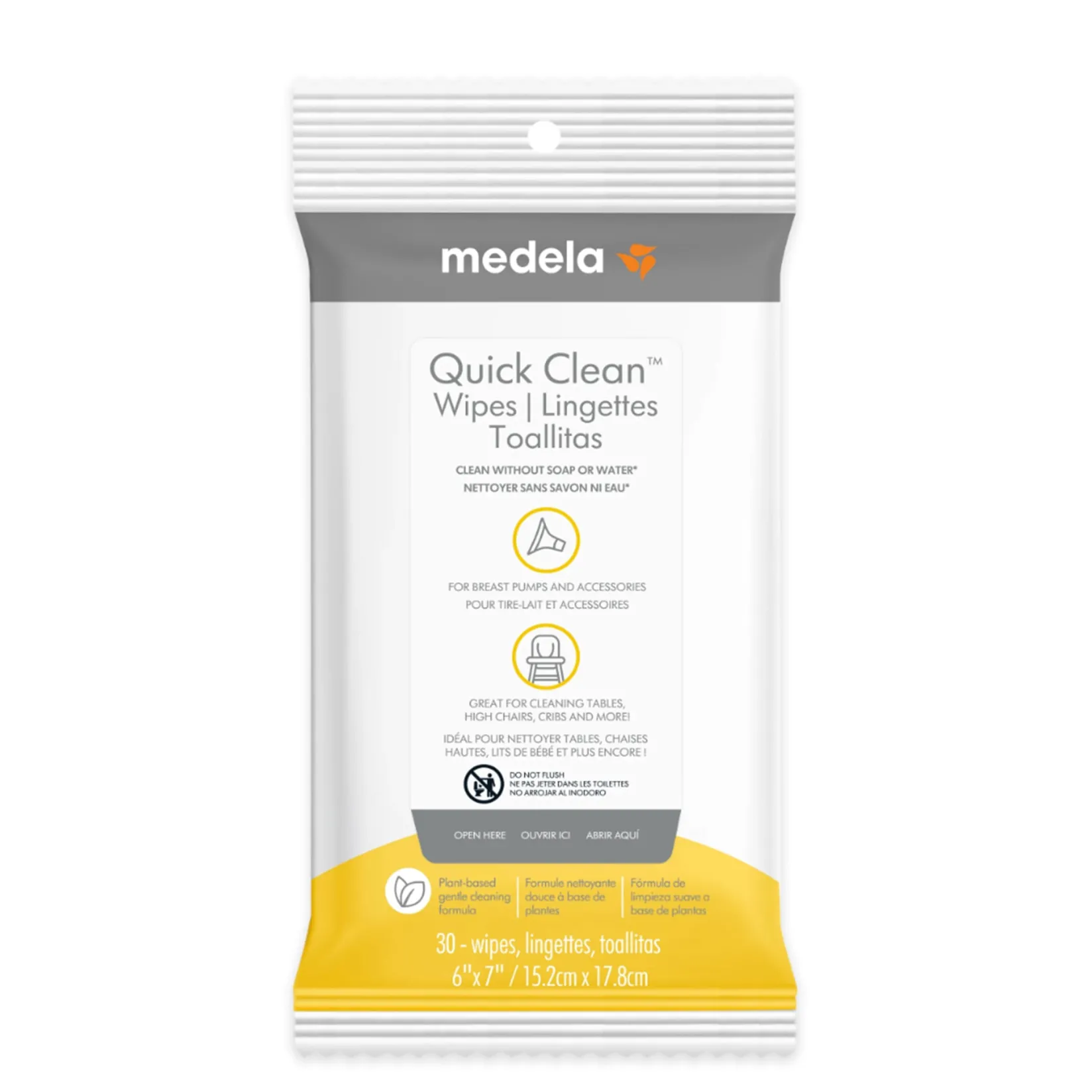 These hygienic breast pump wipes have been proven safe for cleaning pumps, breast shields, baby feeding accessories and changing tables. Medela’s portable cleaning wipes can be used anywhere. Designed for quick and efficient cleaning, just one wipe is enough to clean breast shields, valves and membranes. For maximum convenience and value, Quick Clean Wipes come in an easy-open, resealable pack of 30. These hygienic baby wipes clean far more than pumps and accessories — they’re also great for wiping down changing tables, high chairs, cribs, counters, toys and more. Medela’s primary goal is to help mothers breastfeed for as long as they choose. Reaching that goal responsibly is at the heart of everything we do.
