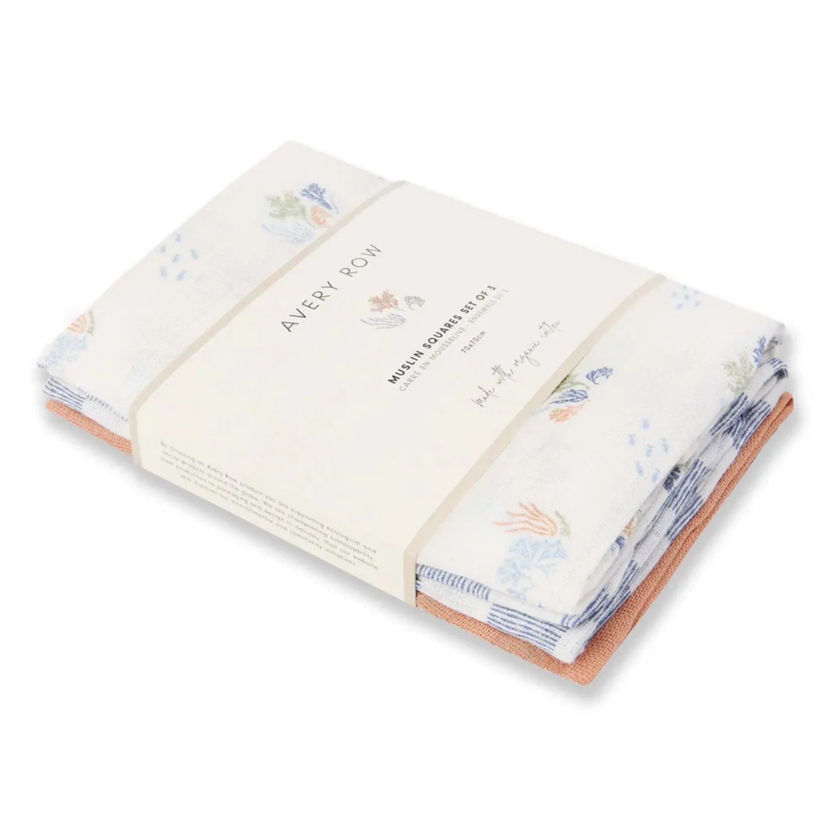 -Set includes 3 muslin squares.