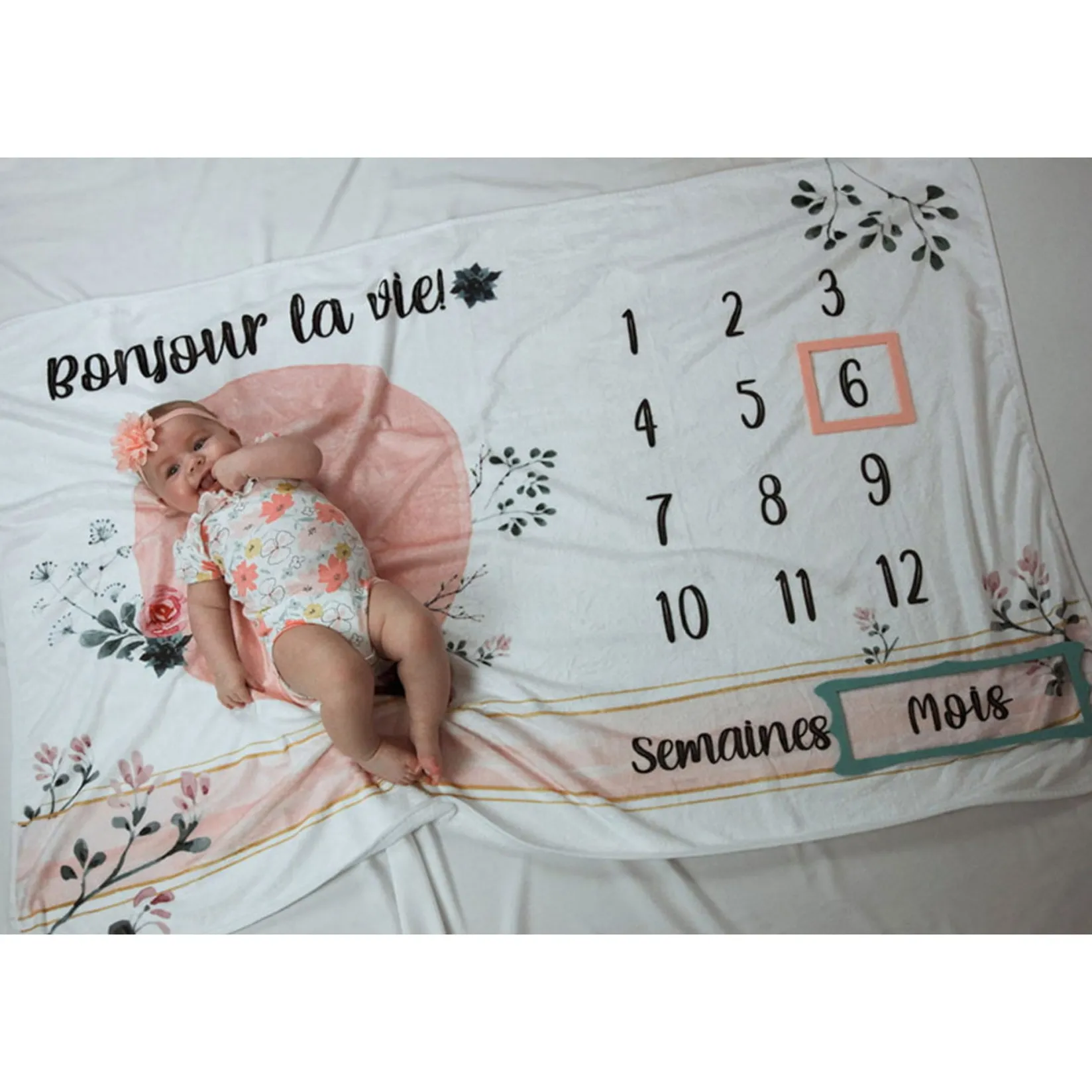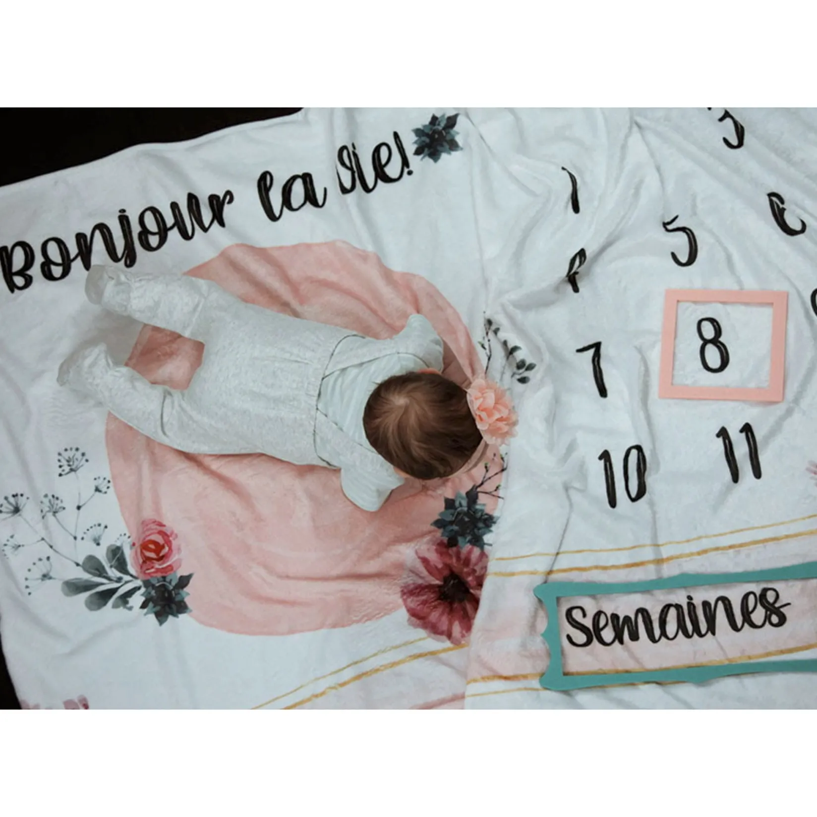 Our baby milestone blanket is perfectly designed to create a small photography studio, right in the comfort of your home. The super soft blanket is designed for multiple use. 1. Take your weekly and monthly pictures with baby to keep up with their quick growth. 2. Use it to keep your little one warm and cozy during colder seasons. 3. The design is created for pictures during the 1st year of your baby, but the blanket itself offers a long lasting relationship with your baby thank to it’s big size and it’s great quality!