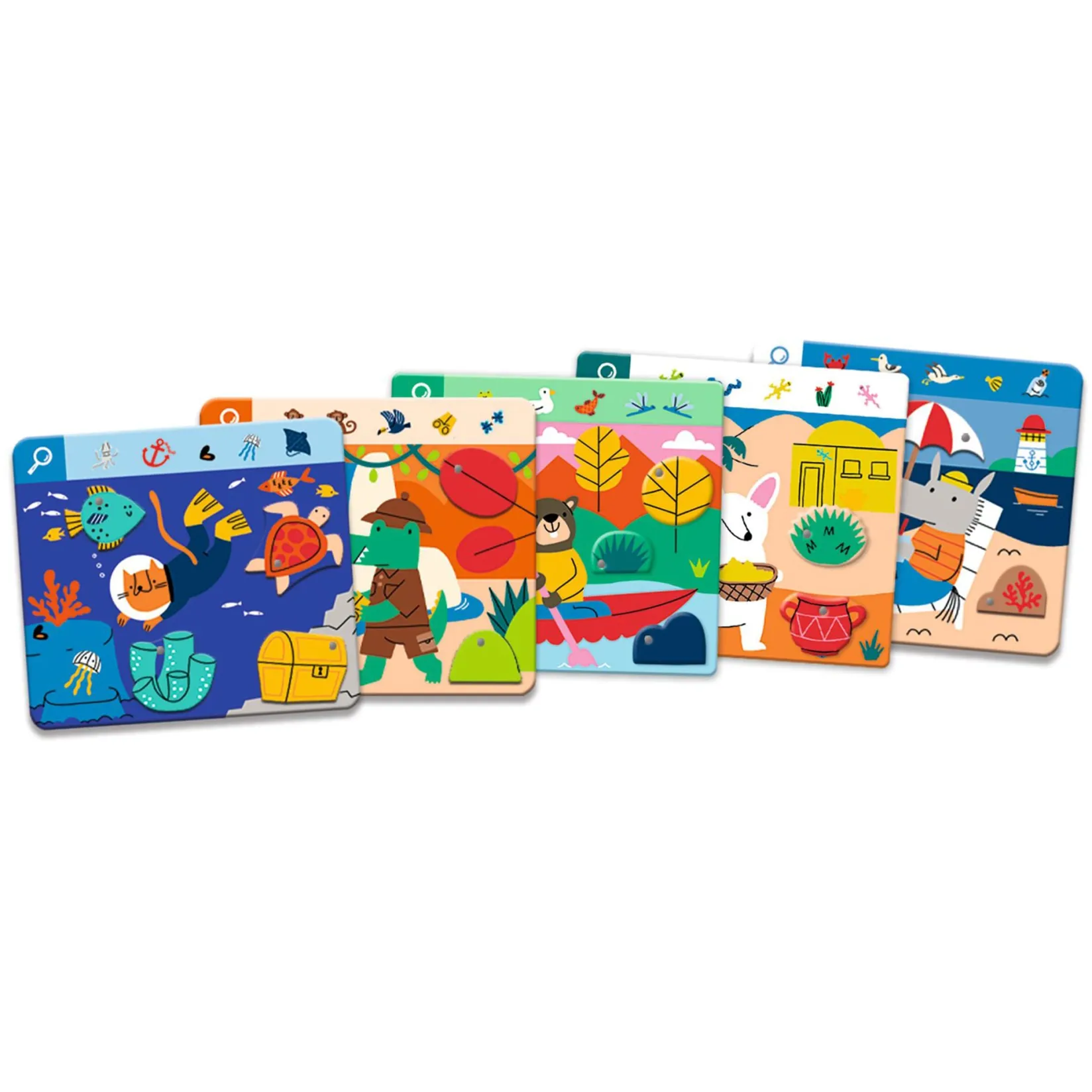 A very first seek-and-find game that’s original, fun and full of action! With 6 boards with moving spinners, each game is filled with discovery and action. A real game of hide-and-seek, the pictures come to life at the child’s fingertips!
