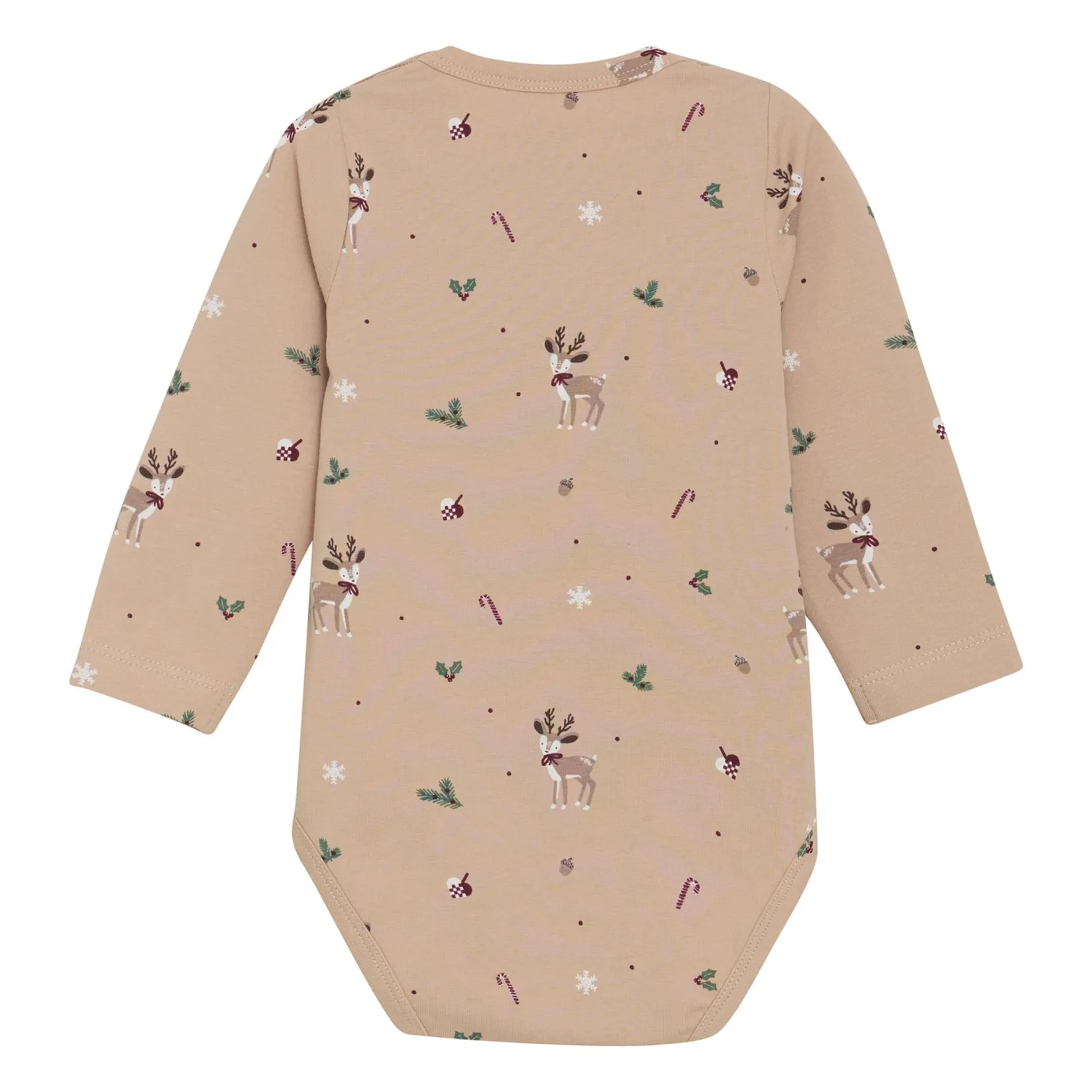 Body with christmas-all-over-print from FIXONI. This body has a nice christmas-all-over-print and can be opened on the shoulder an between the legs. Certified acc. to GOTS – organic CERES-0366