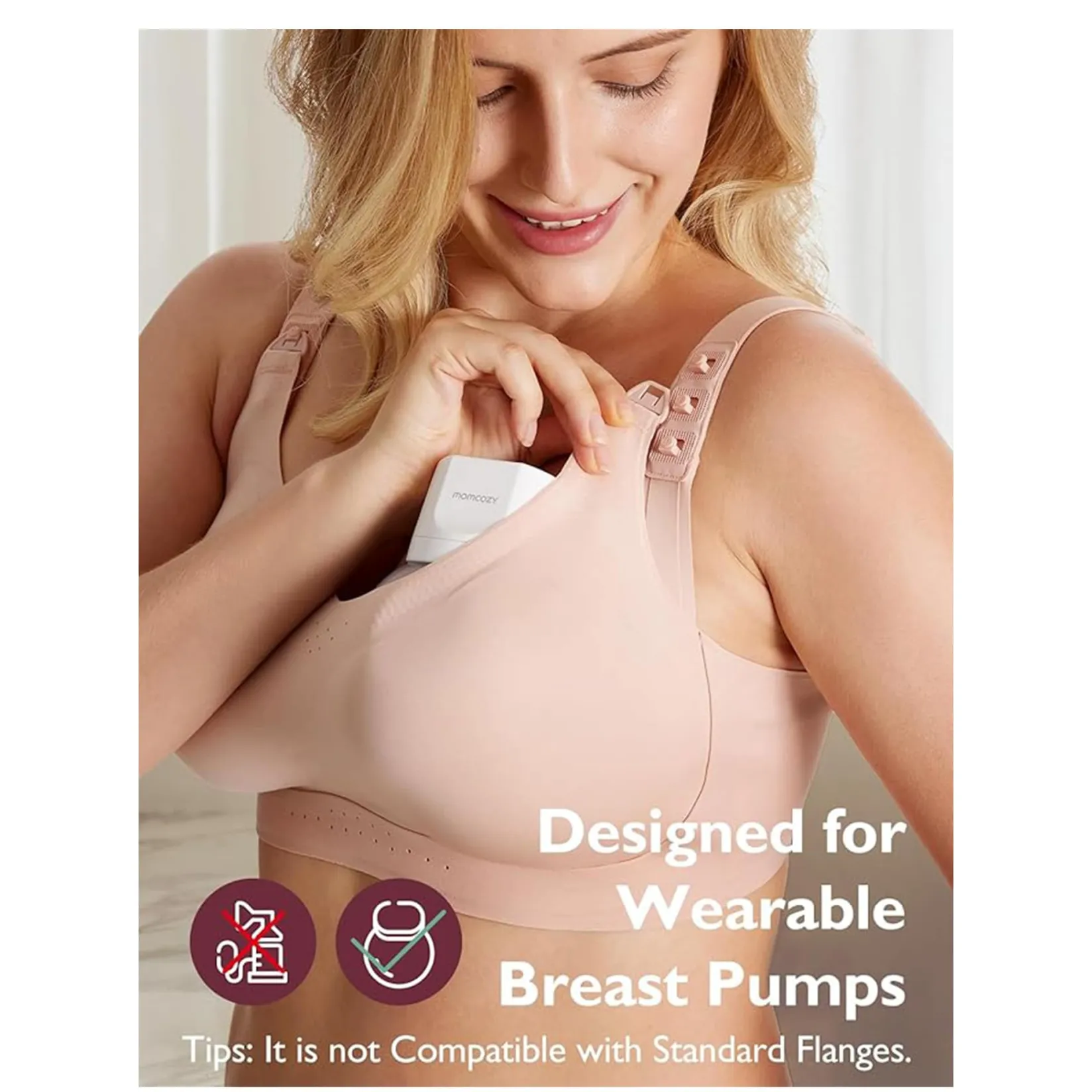 - Designed for Wearable Pumps: Momcozy Pumping Bra is thoughtfully crafted to cater to the needs of breastfeeding mothers who prefer wearable pumps for convenience and mobility. It is designed to work seamlessly with Momcozy, Medela, Elvie, Willow, etc.