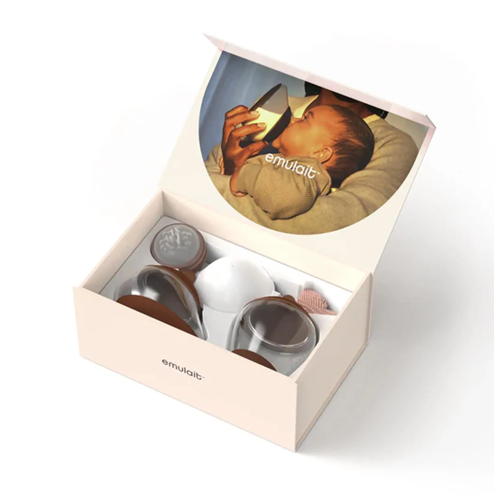 The Emulait Starter Kit includes Anatomical and Classic bottles to provide you with versatility and flexibility. The Anatomical bottle is designed for deep and meaningful feeds, while the Classic bottle offers a sleek design ideal for feeding on the go.