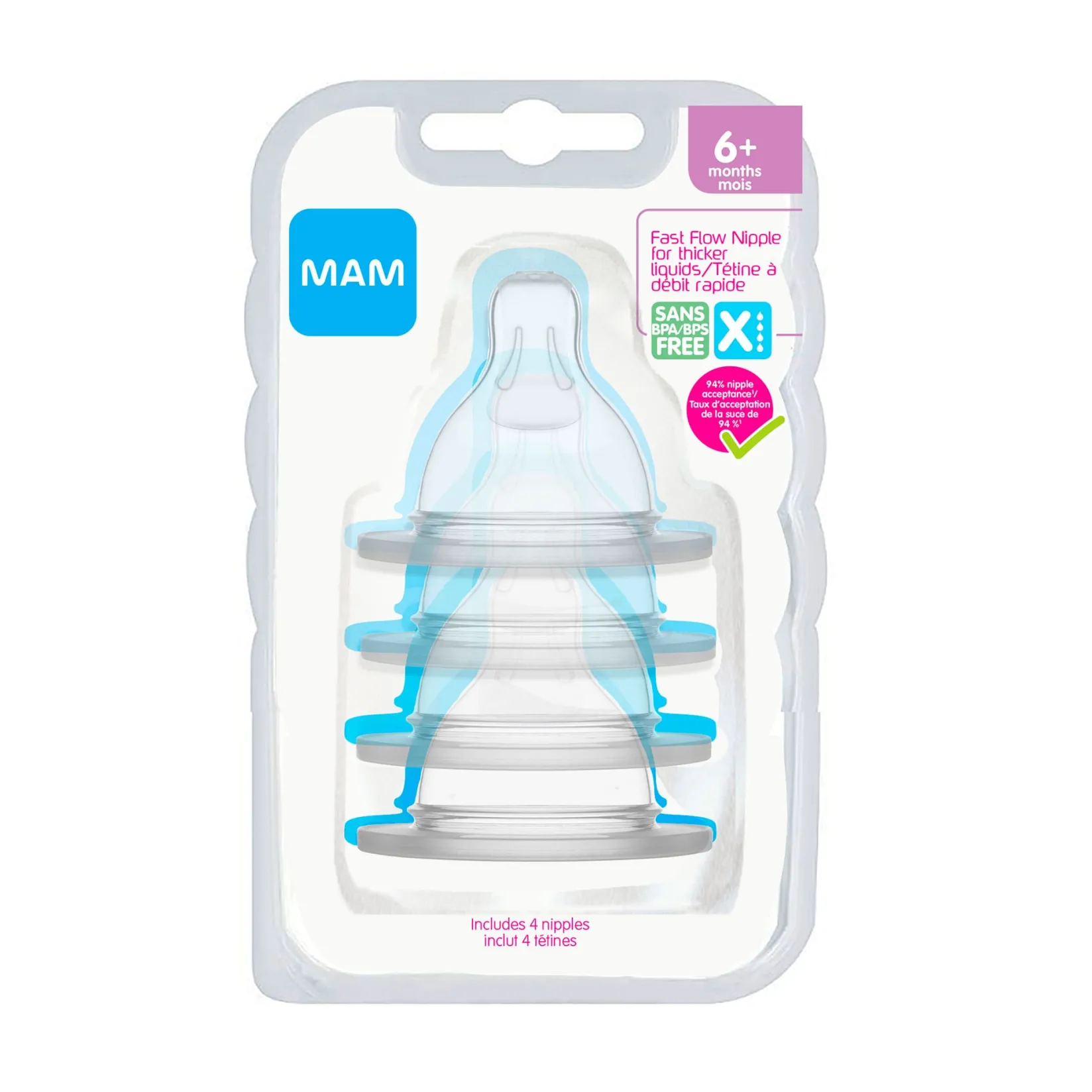 The SkinSoft BPA-free silicone nipple feels just like mom’s skin during breastfeeding. Due to their unique flat and symmetrical design, MAM baby bottle nipples fit perfectly into baby’s mouth. They also fit all MAM feeding bottles. Air valve prevents nipple collapse, allowing babies to drink at a comfortable pace.