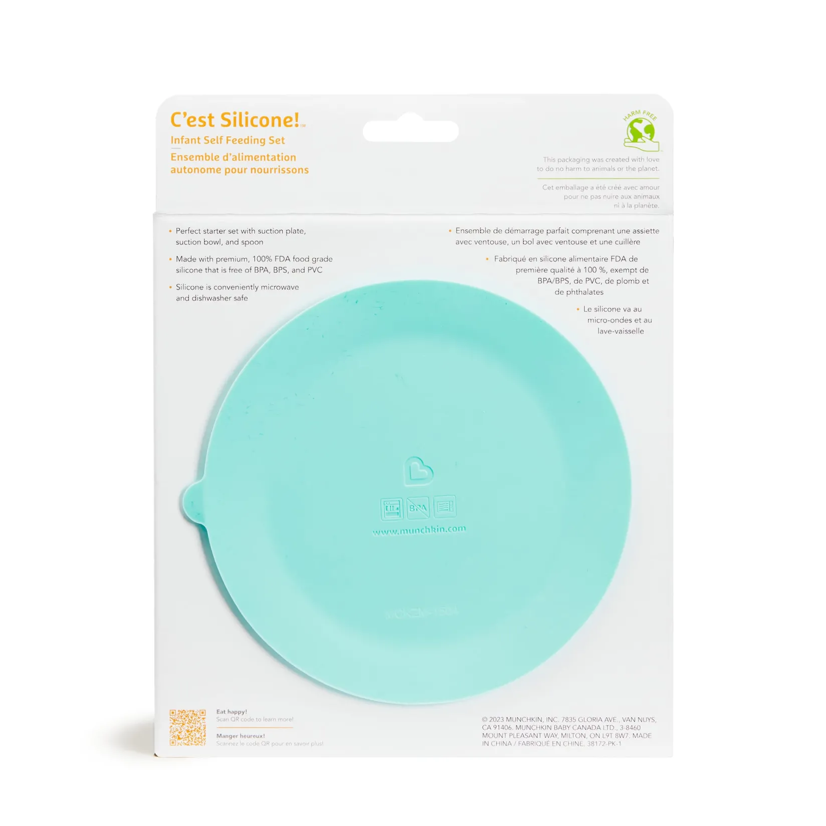 Starter mealtime set includes one suction plate, one suction bowl, and one easy-grip spoon