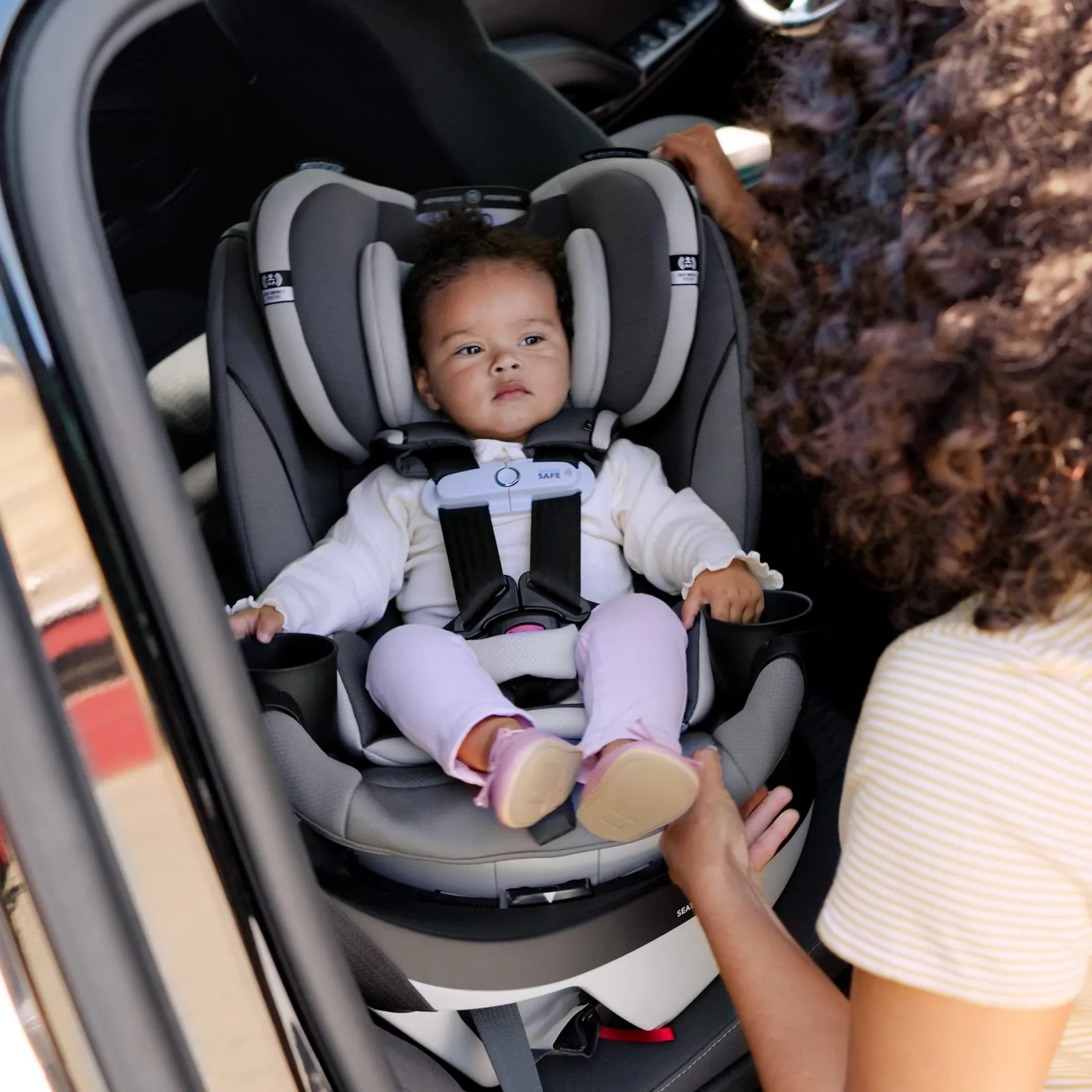 Got a compact vehicle and a little one on the way? Meet the Evenflo® Gold Revolve360™ Slim 2-in-1 Rotational Car Seat with SensorSafe™ — the perfect combination of smart safety, innovation, and style. Designed with a slim 16.7” footprint, it saves valuable backseat space without compromising your child’s comfort or safety. With one-hand, 360° rotation in all modes, getting your child in and out of the car has never been easier.