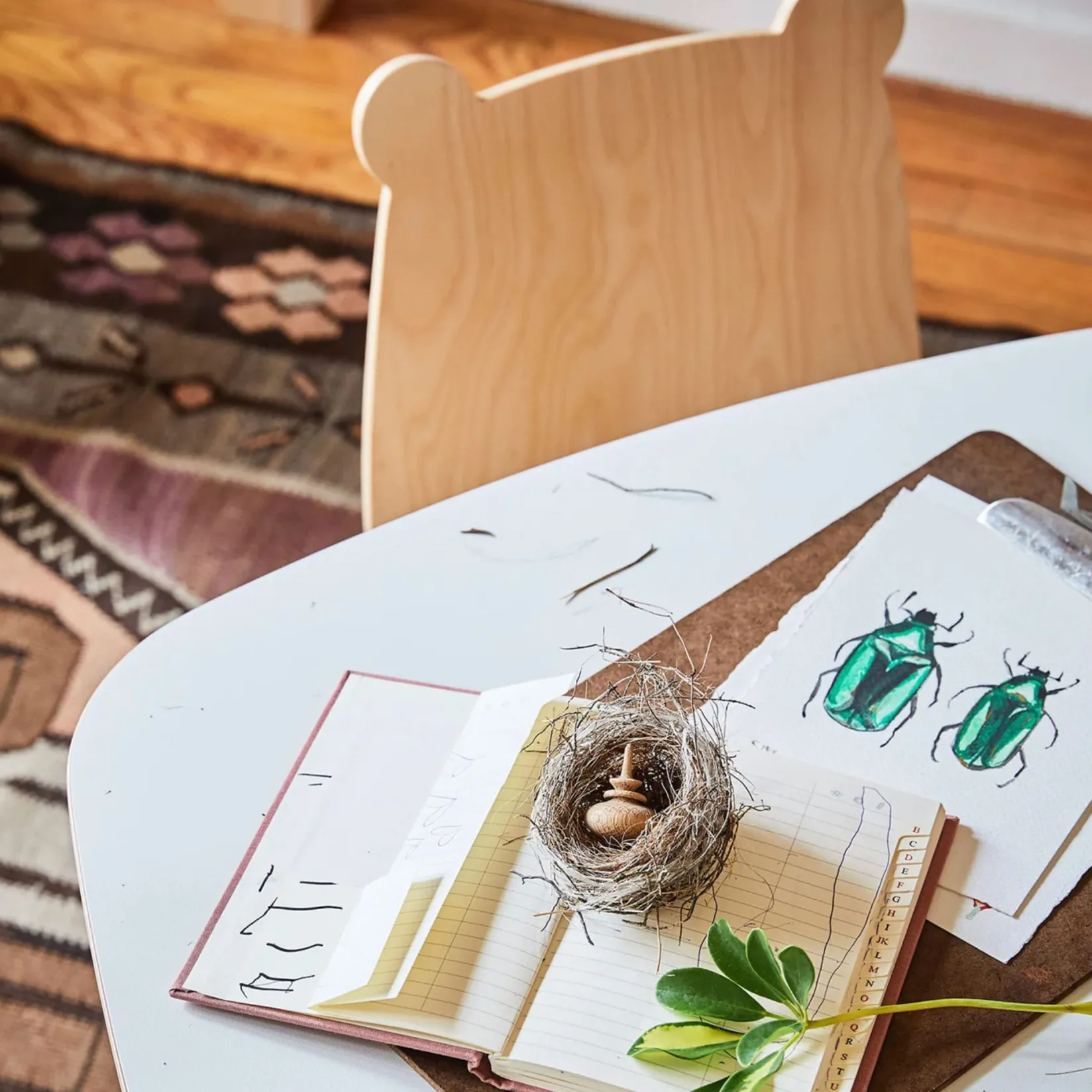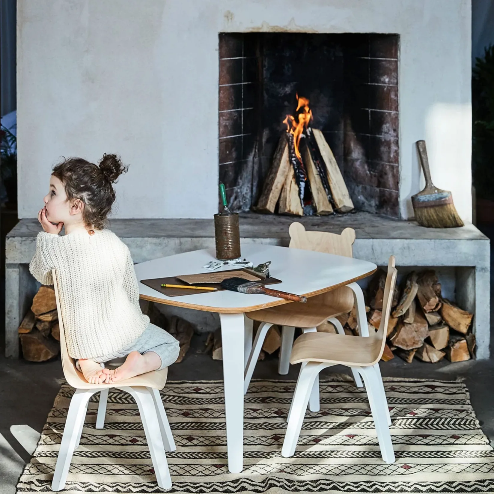 These adorable bear-eared bent plywood chairs are sold in sets of two. Fitting perfectly with the Oeuf play table, they are sure to inspire a bit of extra fun while your child creates, snacks, or reads in their very own, kid-sized chair.