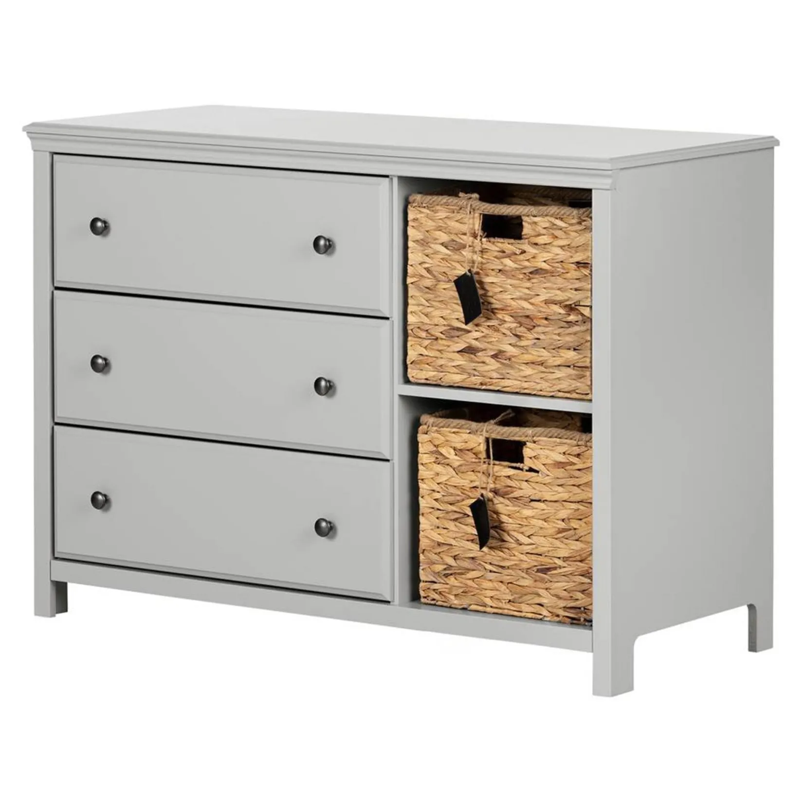 -This combo of drawers and baskets means there’s a place for everything in the nursery. Use the drawers for clothes and the baskets for things like books and toys – anything you think you might need in another room