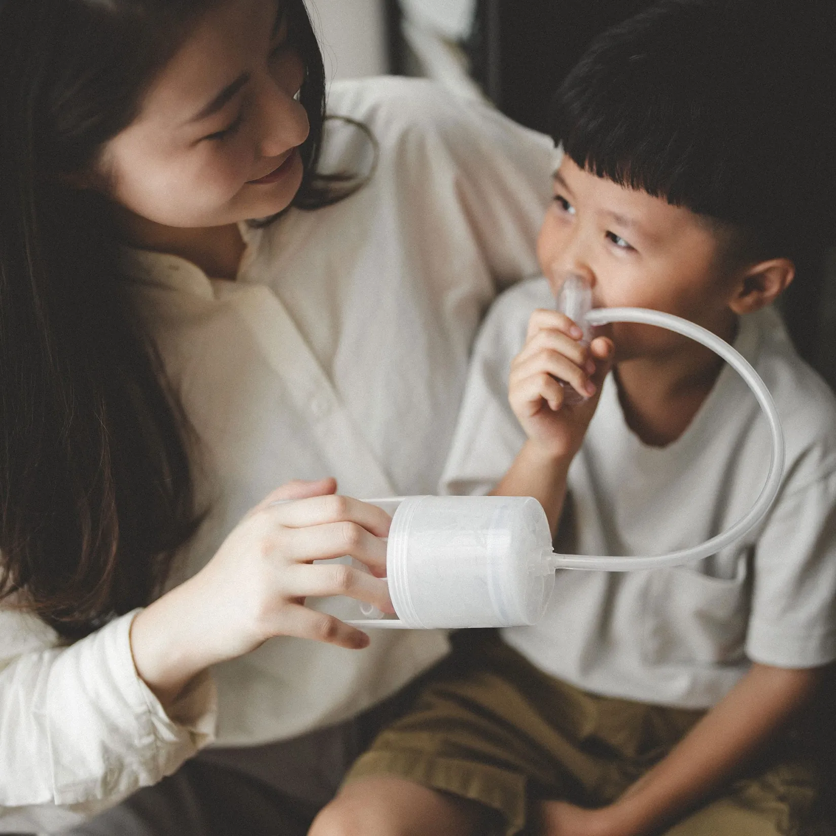 The Chiboji nasal aspirator is designed for easy use. Place the soft, non-invasive tip just under your child’s nostril. Gently press the manual pump to create suction and continue until nasal passages are clear. Once finished, the device disassembles easily for hassle-free cleaning. Its clever design prevents mucus from entering the silicone tube, making maintenance fast, hygienic, and effective.
