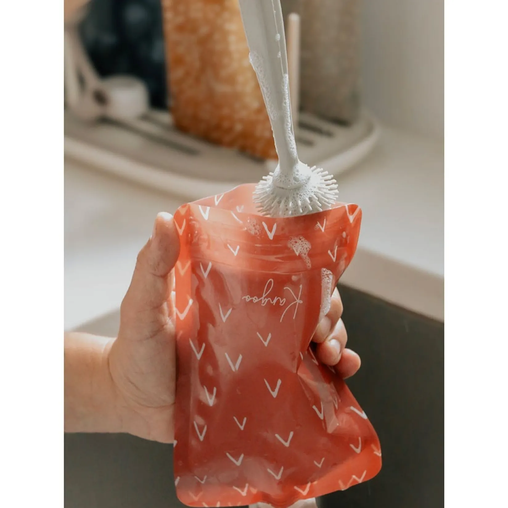 With its unique shape, the Kangoo cleaning brush allows you to clean the inside of your reusable food pouches thoroughly as well as the spout and cap. Moreover, it is designed to perfectly fit the shape of bottle nipples.