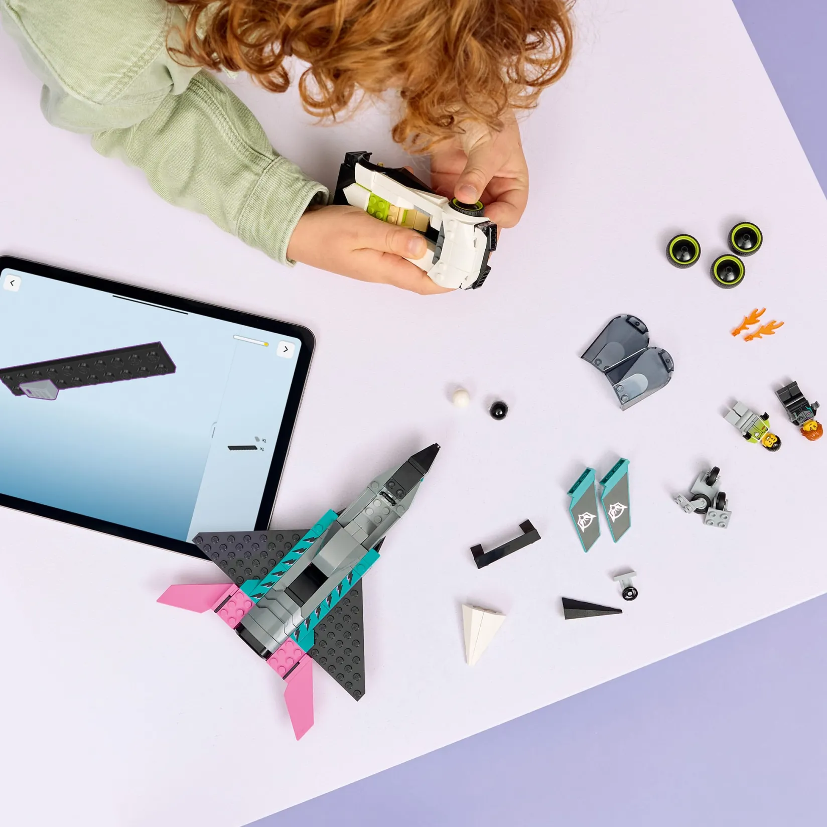 -Comprend une voiture rapide et un avion à réaction à construire, ainsi que des figurines de pilote et de conducteur