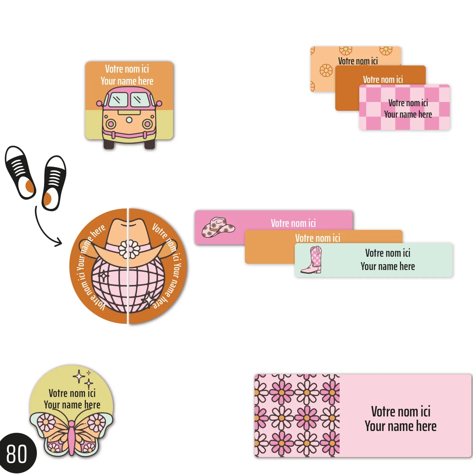The set of personalized sticky labels ClĂ©ment becomes your best ally for the quick identification of your family’s personal items. In a few seconds, young and old will be able to recognize their school items, lunchbox items, sports equipment, shoes, clothes, etc. Waterproof and durable, the labels are not afraid of freezing, water, heat, or steam. They are resistant to the microwave, refrigerator, freezer, dishwasher, washing machine, and dryer.