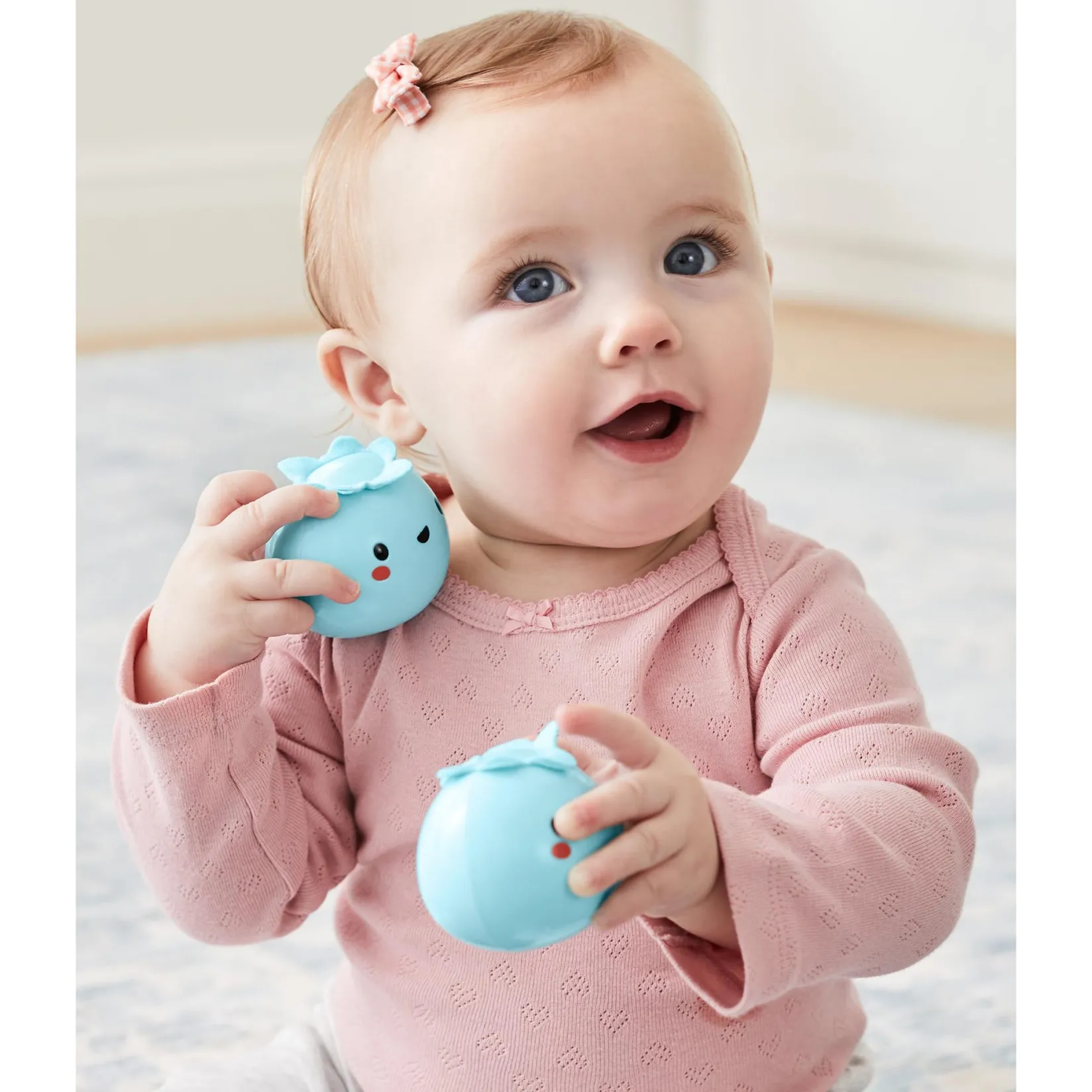Baby’s first jam session is on! Three cute fruit bandmates in easy-grab shapes are ready to rock & roll. A strawberry tambourine and two blueberry shakers create four fun sounds mini musicians will love.