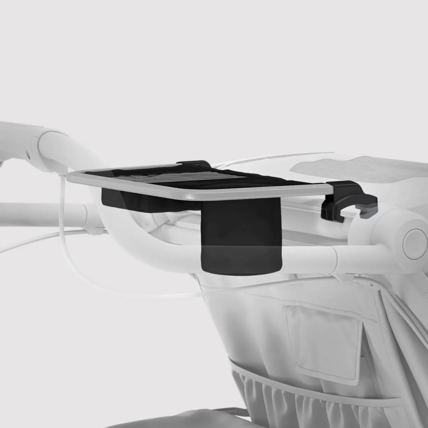 Handlebar storage bag with zippered pocket and integrated cup holder. Compatible with Thule Chariot and Thule Urban Glide models.