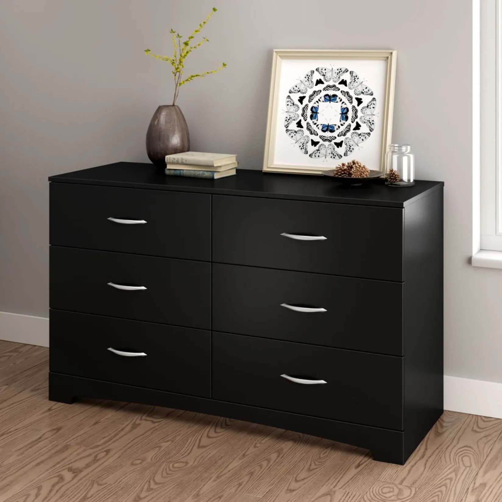 – BEDROOM STORAGE: Providing a set of 6 drawers perfect for clothes, toys or linens, this double dresser is a spacious storage solution.