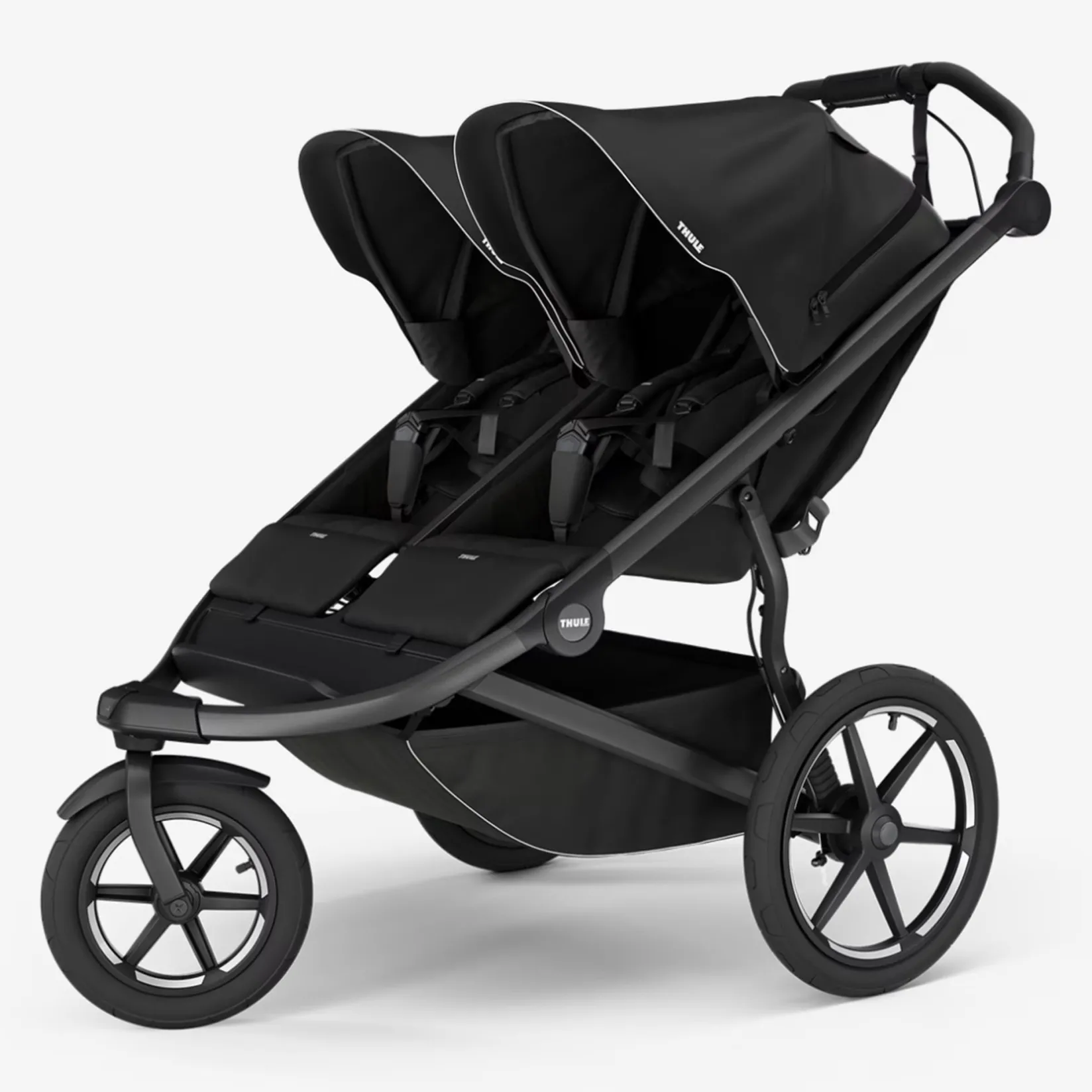 The Thule Urban Glide 3 Double All-Terrain Stroller is the perfect companion from birth for active parents with two children. This lightweight side-by-side stroller features spacious, individually adjustable seats and easily fits through doorways.