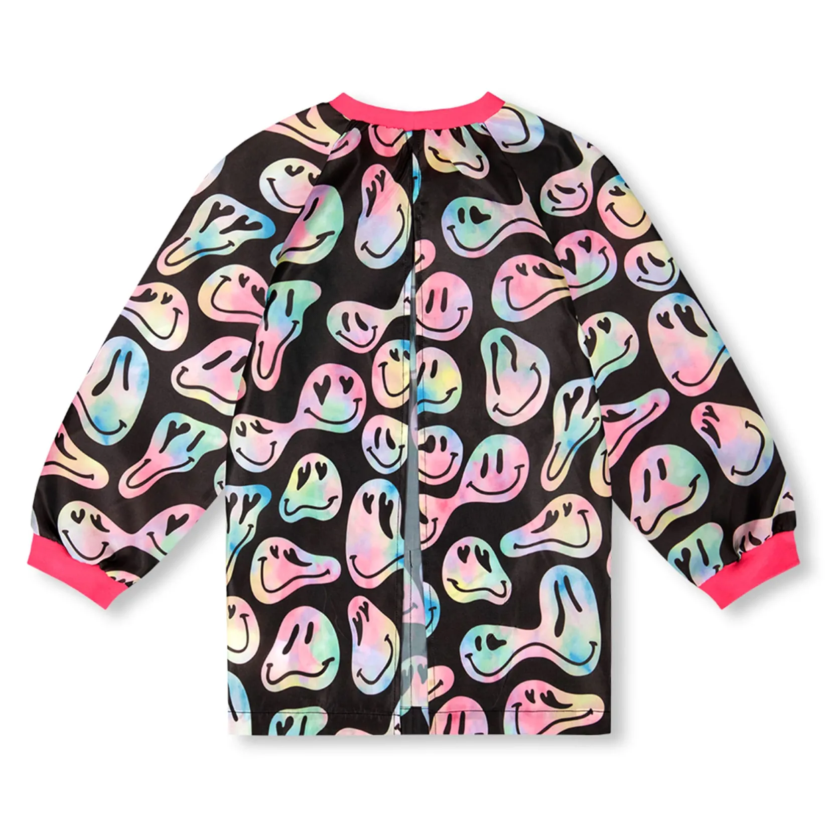Make art class your most stylish moment of the day with our green cat print smock. In fabric made from recycled plastic bottles, this eco-friendly school apron features a long raglan sleeve silhouette with double front pockets, a round neckline, elasticated wrists, and a water-resistant finish..