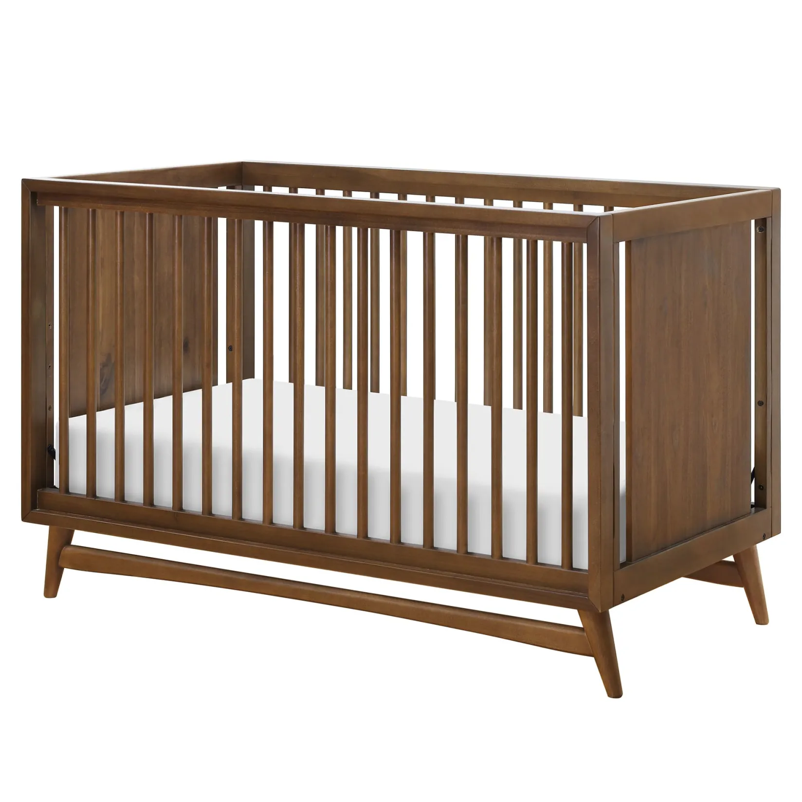 -Refined mid-century modern style: featuring a modern, clean silhouette and classic rounded spindles. flared tapered legs add a playful touch to this sophisticated crib