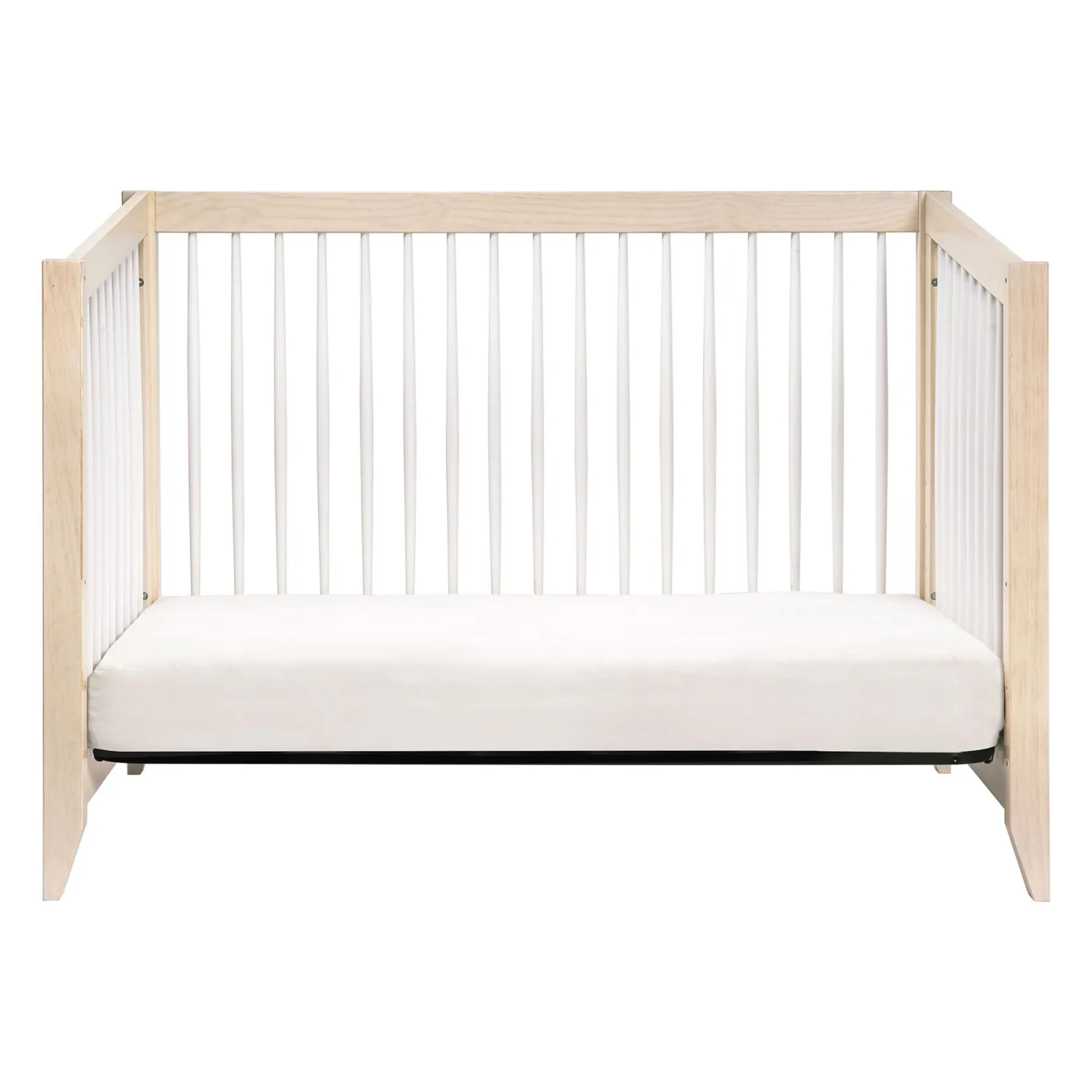 Add new dimension and geometric playfulness to your modern nursery with the Sprout 4-in-1 Convertible Crib. Tapered spindles and triangular feet bring nostalgic charm to this crib’s modern shape. And with a subtle raised back, Sprout can grow with your babe with a smart full-size bed conversion. Made with sustainable pine wood and GREENGUARD Gold certified to improve indoor air quality.