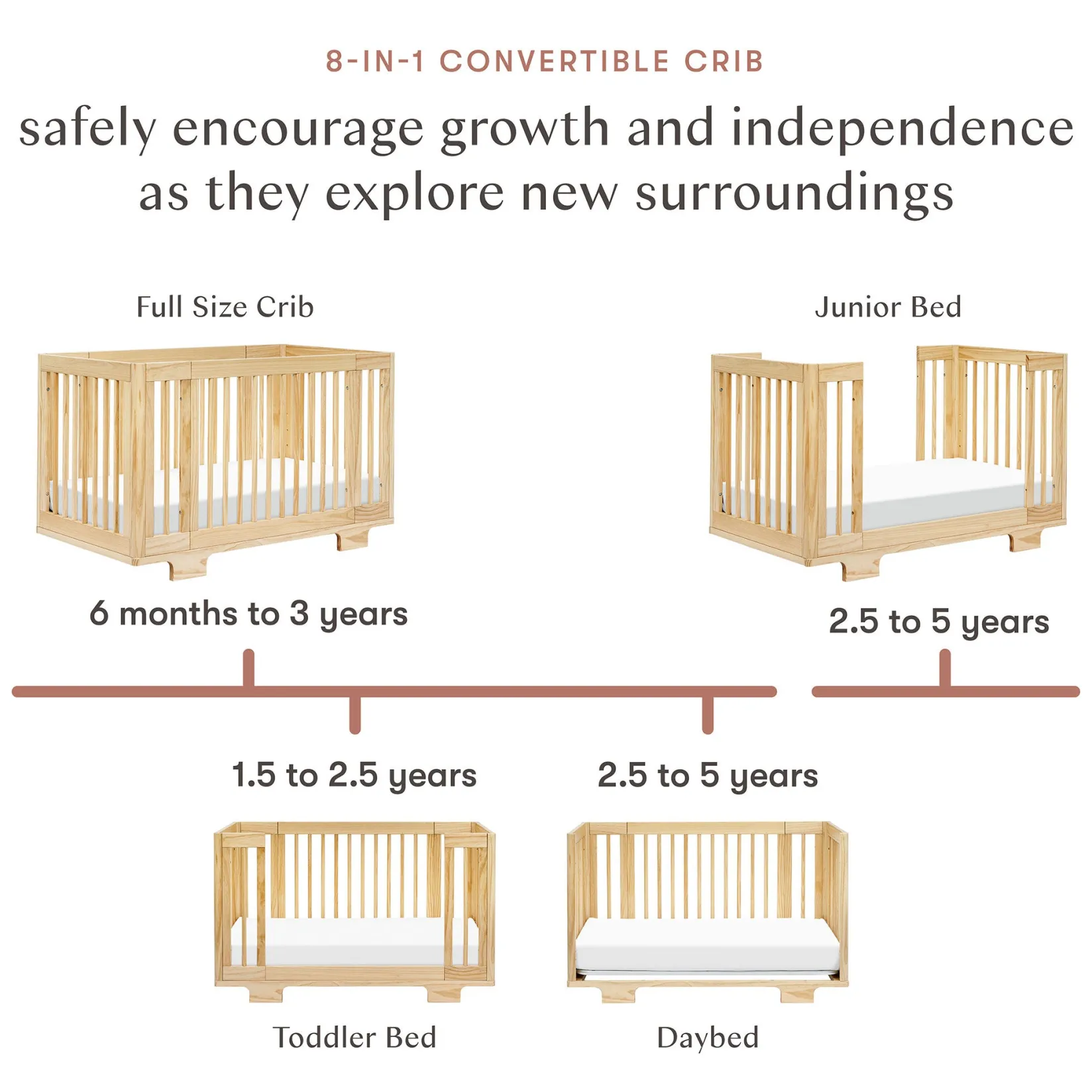 -ALL-STAGES 8-IN-1 CONVERTIBILITY: The patent-pending Yuzu Crib has been engineered to grow at your little one’s pace and adapt to your space. Choose from 8 conversions across 3 unique sizes to fit your family & home: bassinet, midi crib, midi toddler bed, midi daybed, full-size crib, full toddler bed, full daybed, and junior bed.