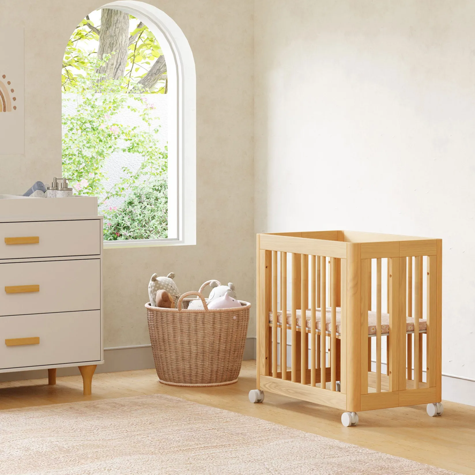 Bassinet? Crib? How about both? The innovative Yuzu 8-in-1 Convertible All-Stages Crib seamlessly switches from bassinet to our transitional midi size and then to a standard full-size crib and junior bed, with all conversion kits included. Choose from a variety of mattress heights and configurations in each size. Featuring stylish rounded spindles, gently curved corners and playful arched feet, the Yuzu is made with sustainable New Zealand pine wood and certified Greenguard Gold for your baby’s safety.