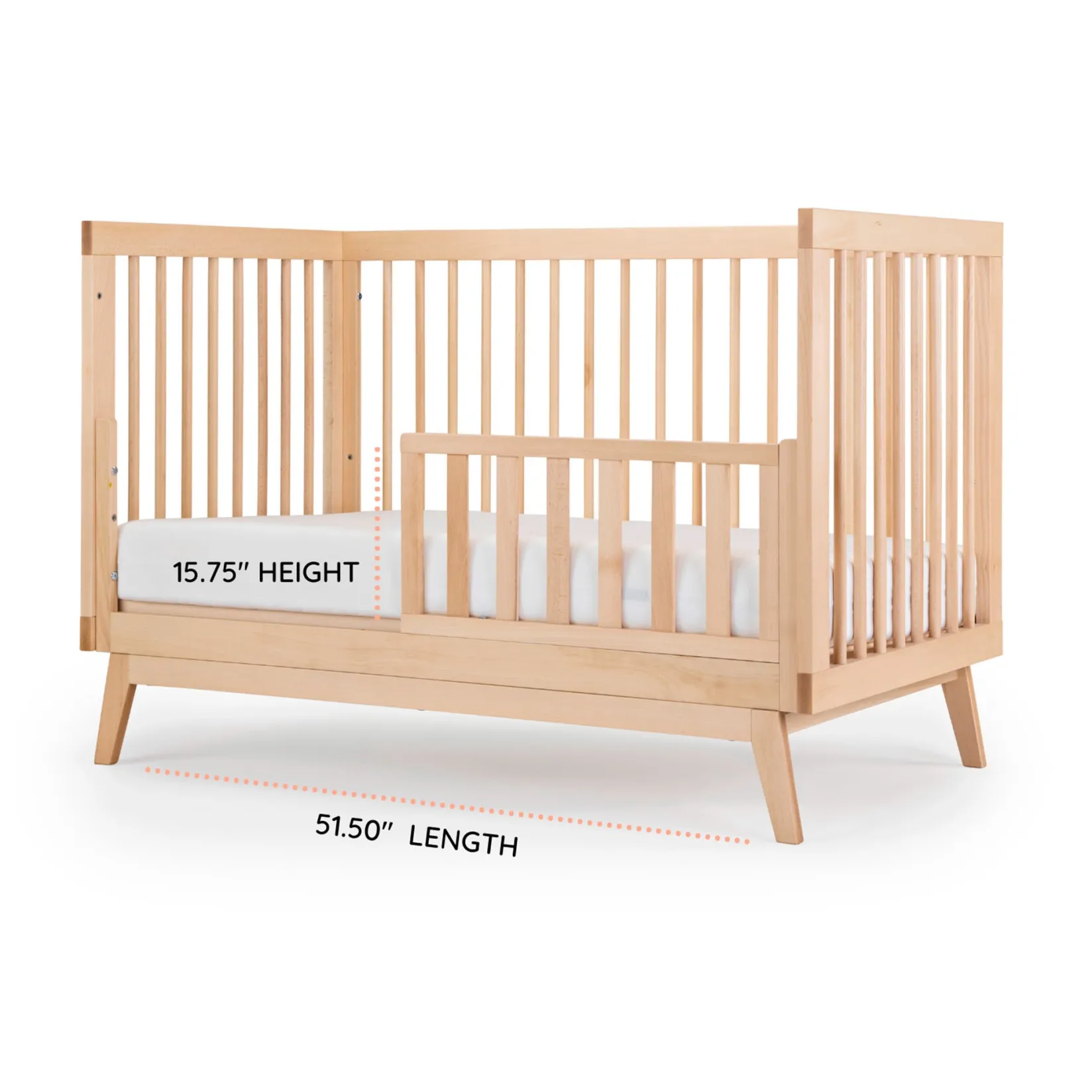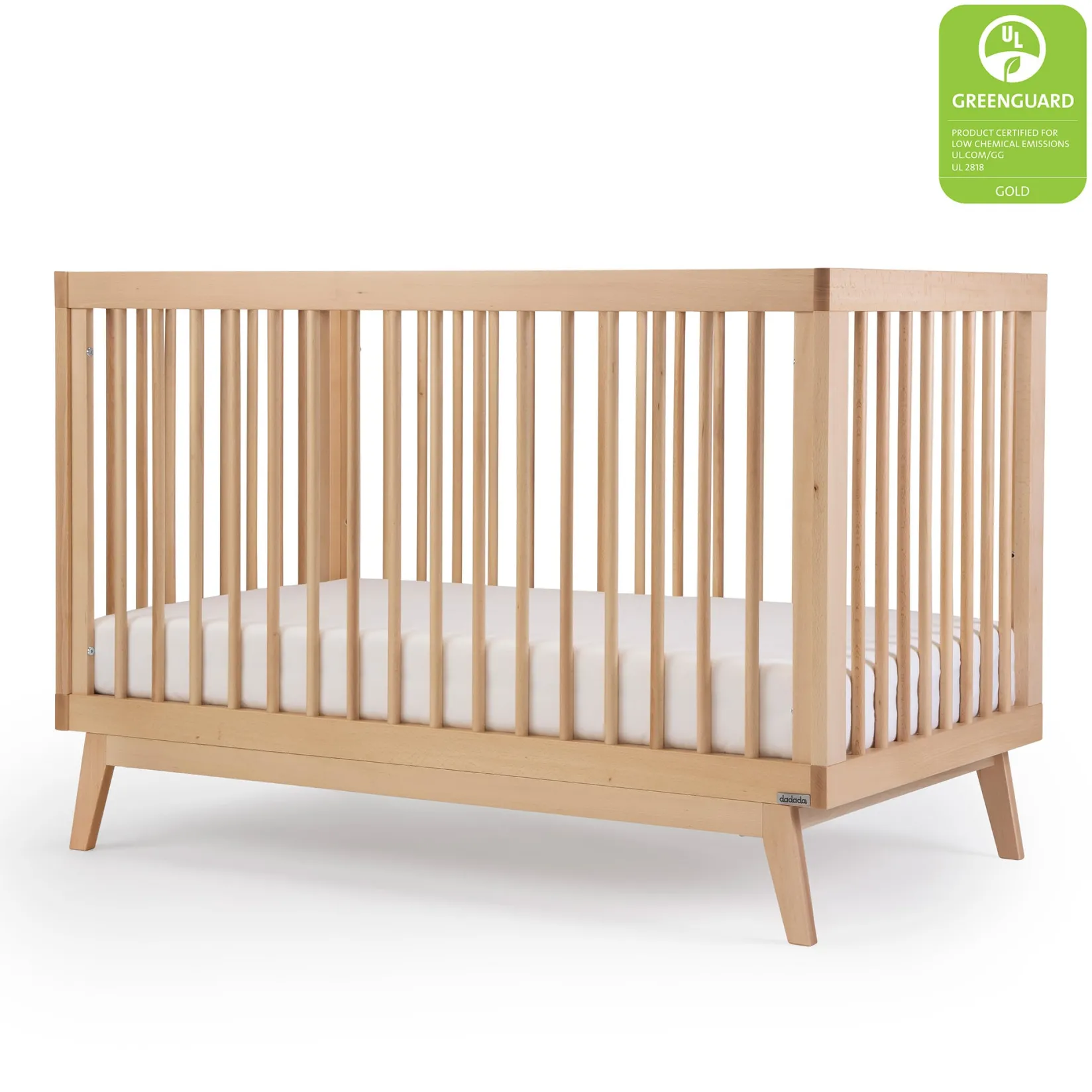 Made in Italy and GREENGUARD Gold certified, the Soho 3-in-1 Convertible Crib updates a classic open Scandinavian design with mid-century modern lines to complement any room style. Sturdy inclined legs tuck beneath a strong frame and all four walls allow easy air circulation. With three mattress positions available, you can easily adjust the bed heights to match your baby’s growth from newborn to toddler (toddler bed/day bed conversion kit sold separately).