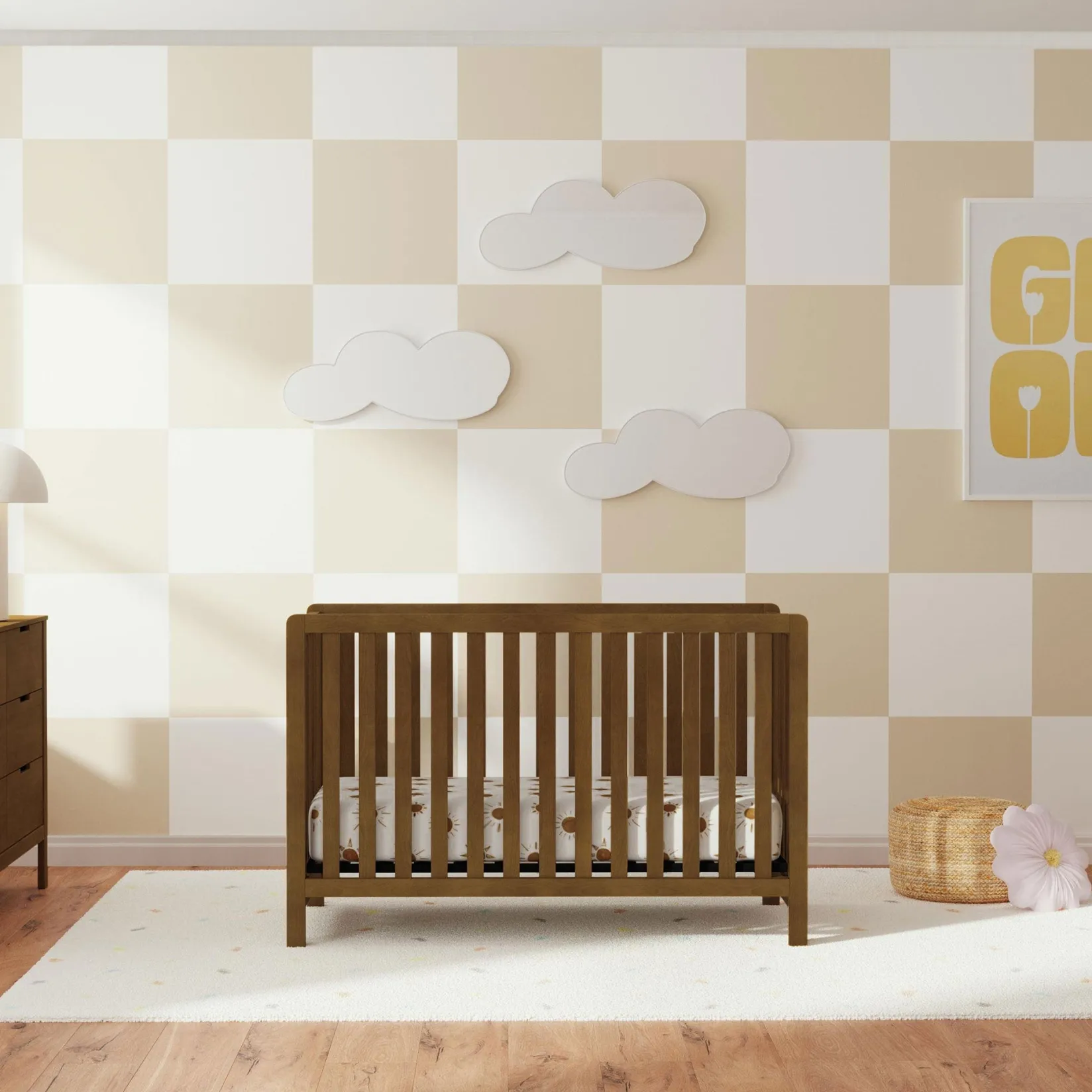 The Colby 4-in-1 Convertible Crib combines clean lines, outstanding quality and multi-functional design. Converts to a toddler bed, day bed, and full-size bed for use long past the nursery years.