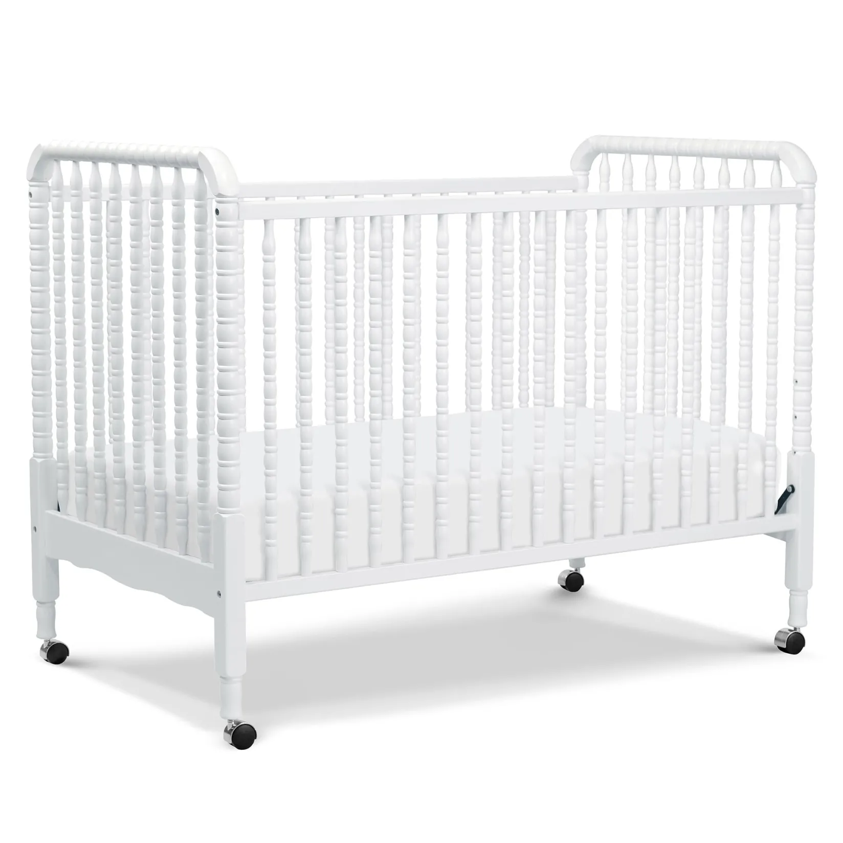 DaVinci’s beloved Jenny Lind 3-in-1 Convertible Crib brings classic, vintage-inspired charm to the nursery. Signature heirloom style and solid wood spindle posts are paired with easy assembly and convertibility for use beyond the nursery years. Crib converts to toddler bed and daybed, with wheels included for mobility.Â