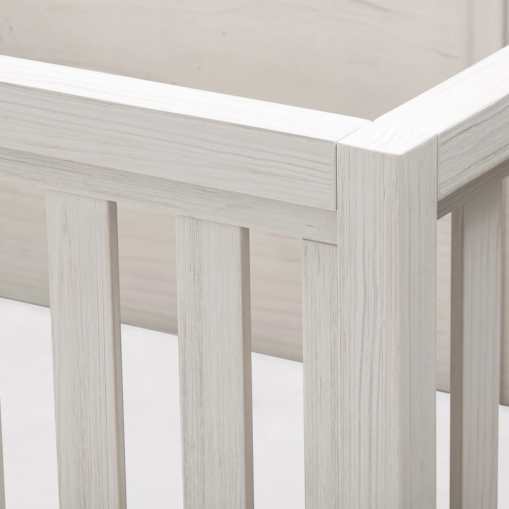 Lean into the modern farmhouse aesthetic with the Newbern 4-in-1 Convertible Crib. Featuring beautifully textured finish, streamlined metal base and contemporary trim details, this crib will perfectly complement your home. Built to seamlessly transition from newborn to toddler, the crib has four different mattress heights and easily converts to a toddler bed, daybed and full-size bed. Complete your nursery with the Newbern 6-Drawer Dresser. sold separately