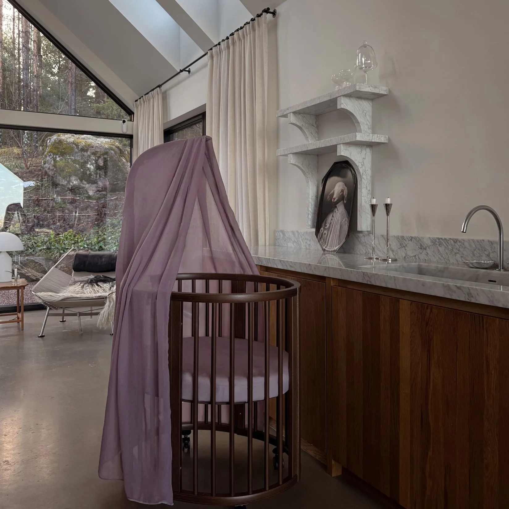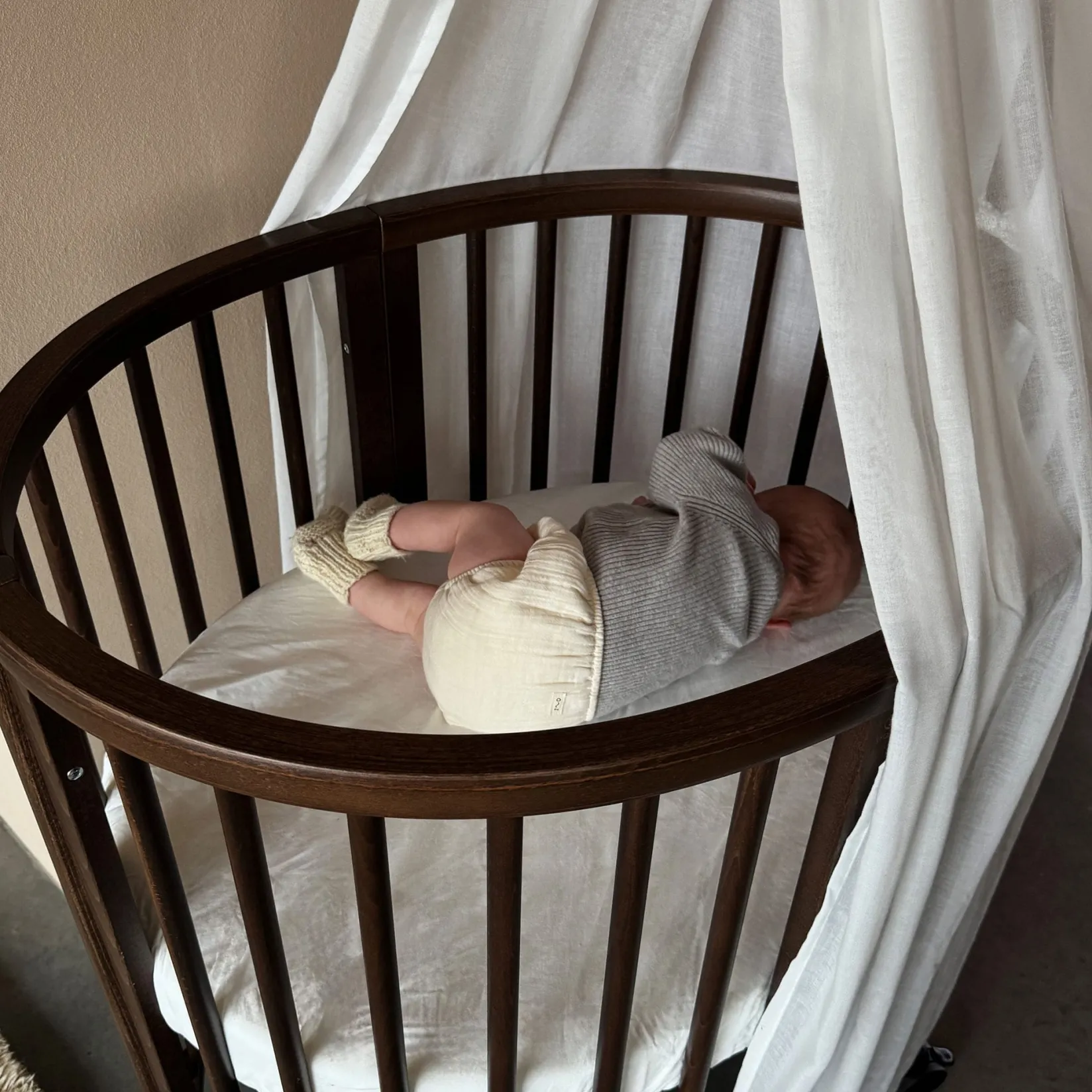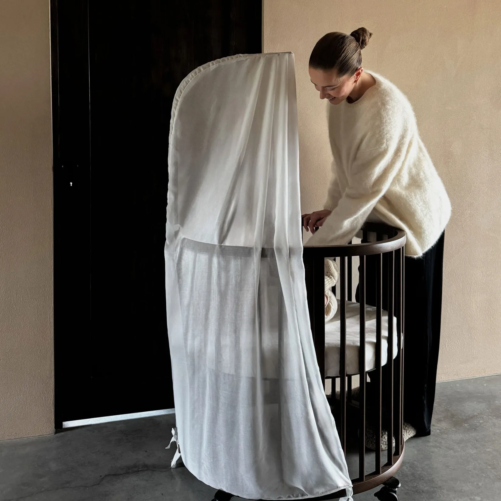The Stokke® Sleepi™ Mini is the ideal first bed for your newborn. Creating a nest-like environment, it helps baby feel snug and secure. Soft oval design cocoons your baby offering comfort and familiarity for restful sleep and the sweetest of dreams. The drape rod and canopy make it a truly elegant addition to any nursery. Lockable swivel wheels can be used to rock your baby gently to sleep and makes your crib easy to move from room to room. At only 67 cm / 26,4 in inches wide, it’s amazingly space efficient, making it ideal for petite nurseries. The Stokke® Sleepi™ concept has been developed with sound sleep and safety in mind. It is available with a new firm and breathable Sleepi™ mattress which exceeds the highest safety standards. Accessorize with the breathable mesh liner and high-quality textiles. Stokke® Sleepi™ is FSC®-certified using responsibly sourced wood. FSC is a sustainable forest management solution. With this Stokke® Sleepi™ we help take care of the world’s forests.