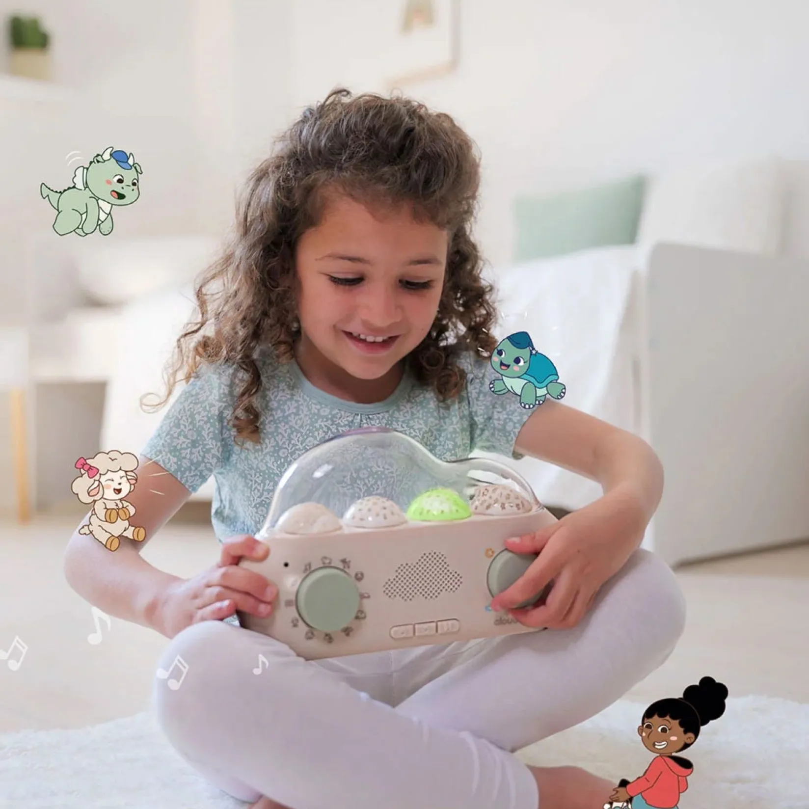 cloud.box™ narrates 36 fun stories based around 9 characters with very different personalities. With enchanting universes to explore- Ocean, Forest, Space, and Village -CloudBox™ helps soothe babies and immerses children into magical worlds that help develop their imagination.