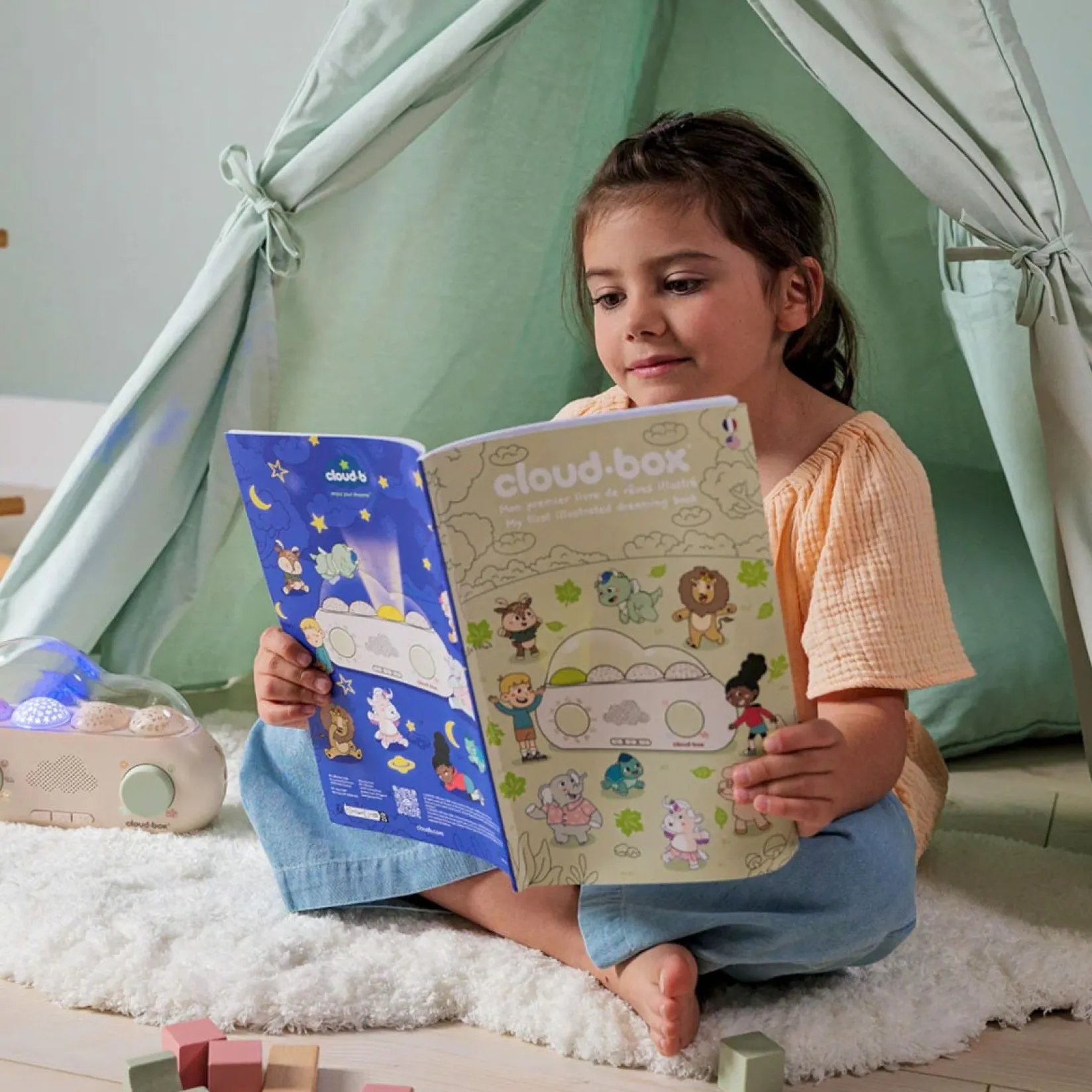The unique storyteller which combines stories, sounds and light projections! CloudBox™ is both a storyteller and projection nightlight, and can be enjoyed by children aged 0-8.