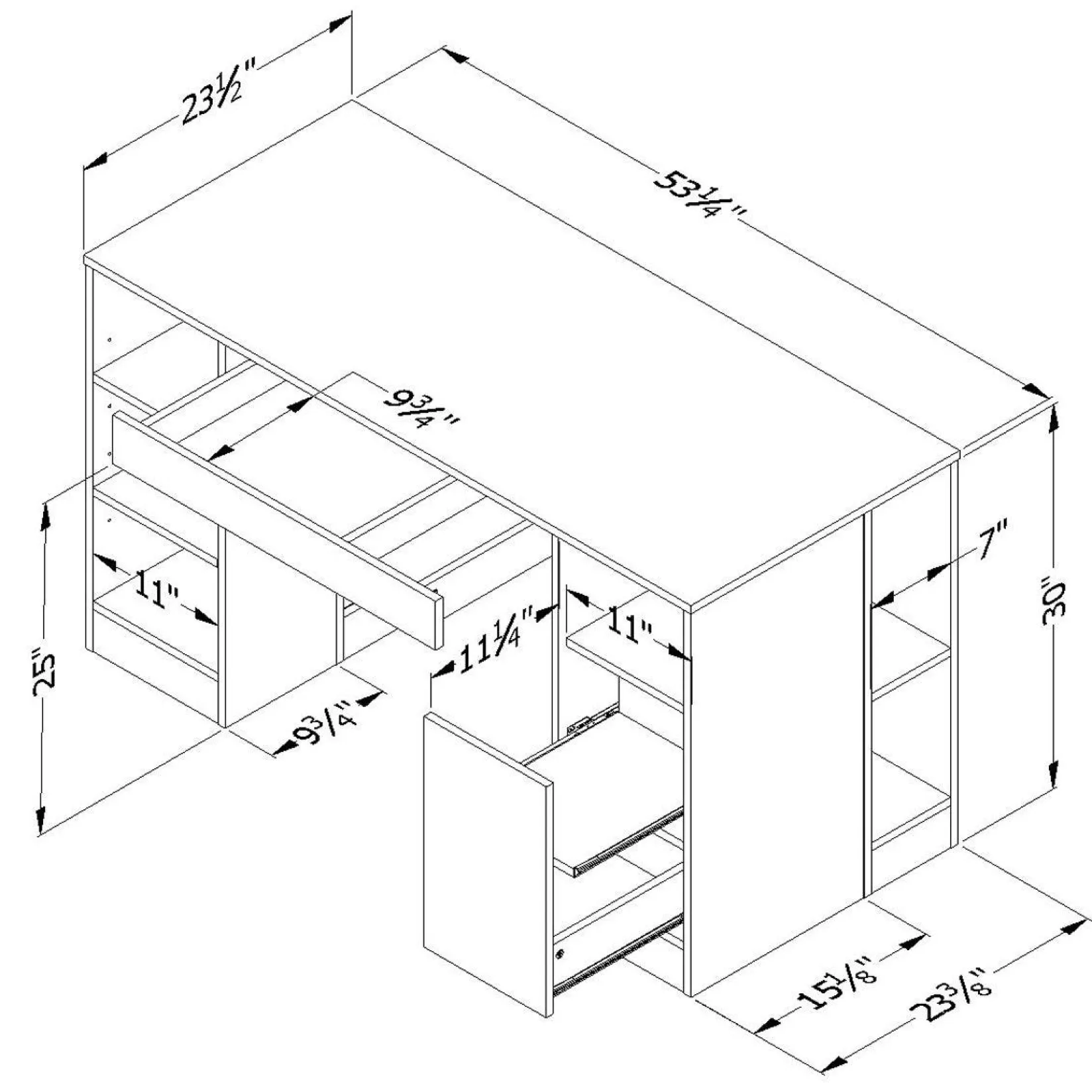 – The other module includes: (front) 1 open storage space defined by a fixed shelf and a drawer: tall front panel covers shelf that slides out for easy access; (side) 2 narrow storage spaces separated by a fixed shelf, ideal for putting away binders and magazines that you consult for inspiration