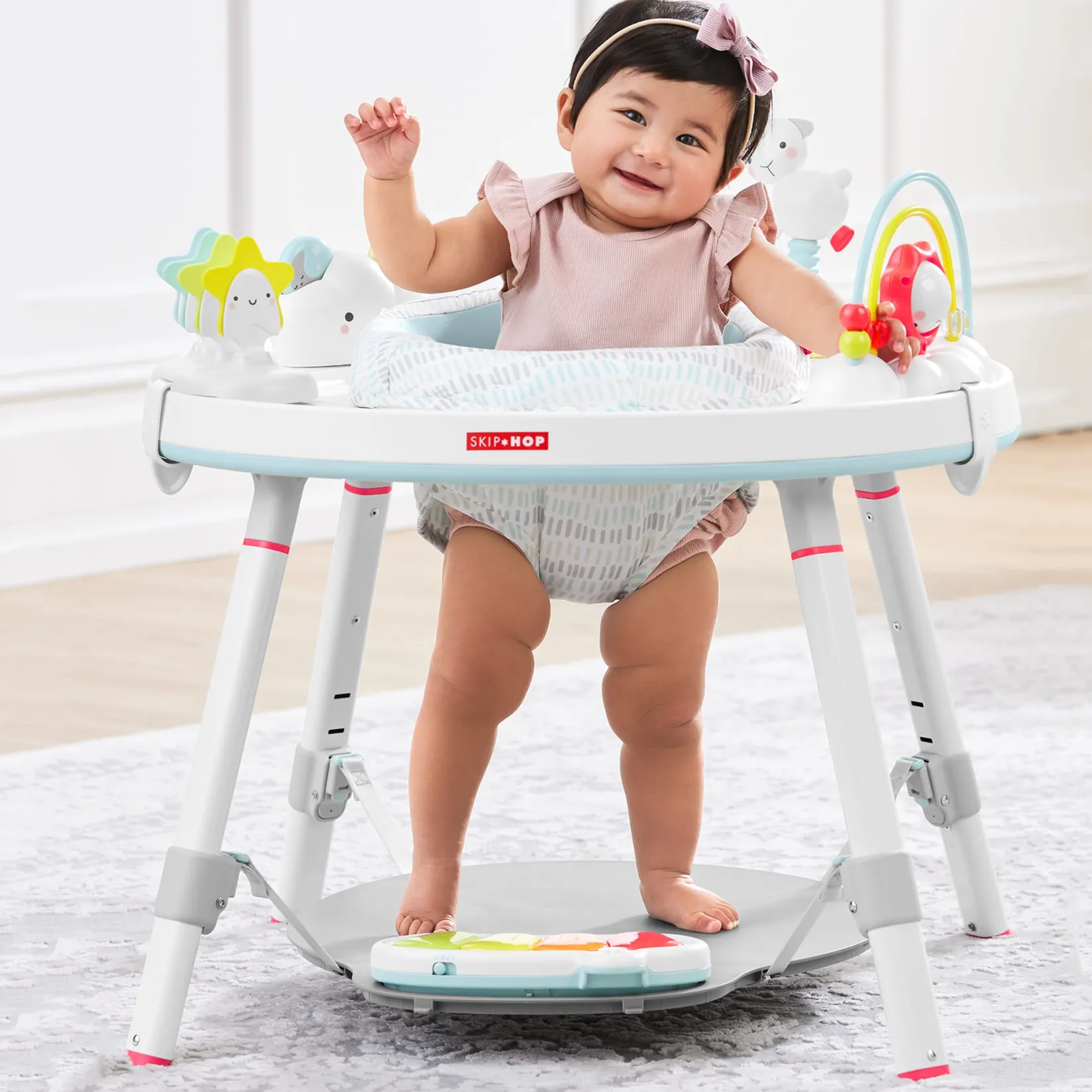 -Three stages of use: Sit, swivel, bounce & play; Cruise & interact; Play table