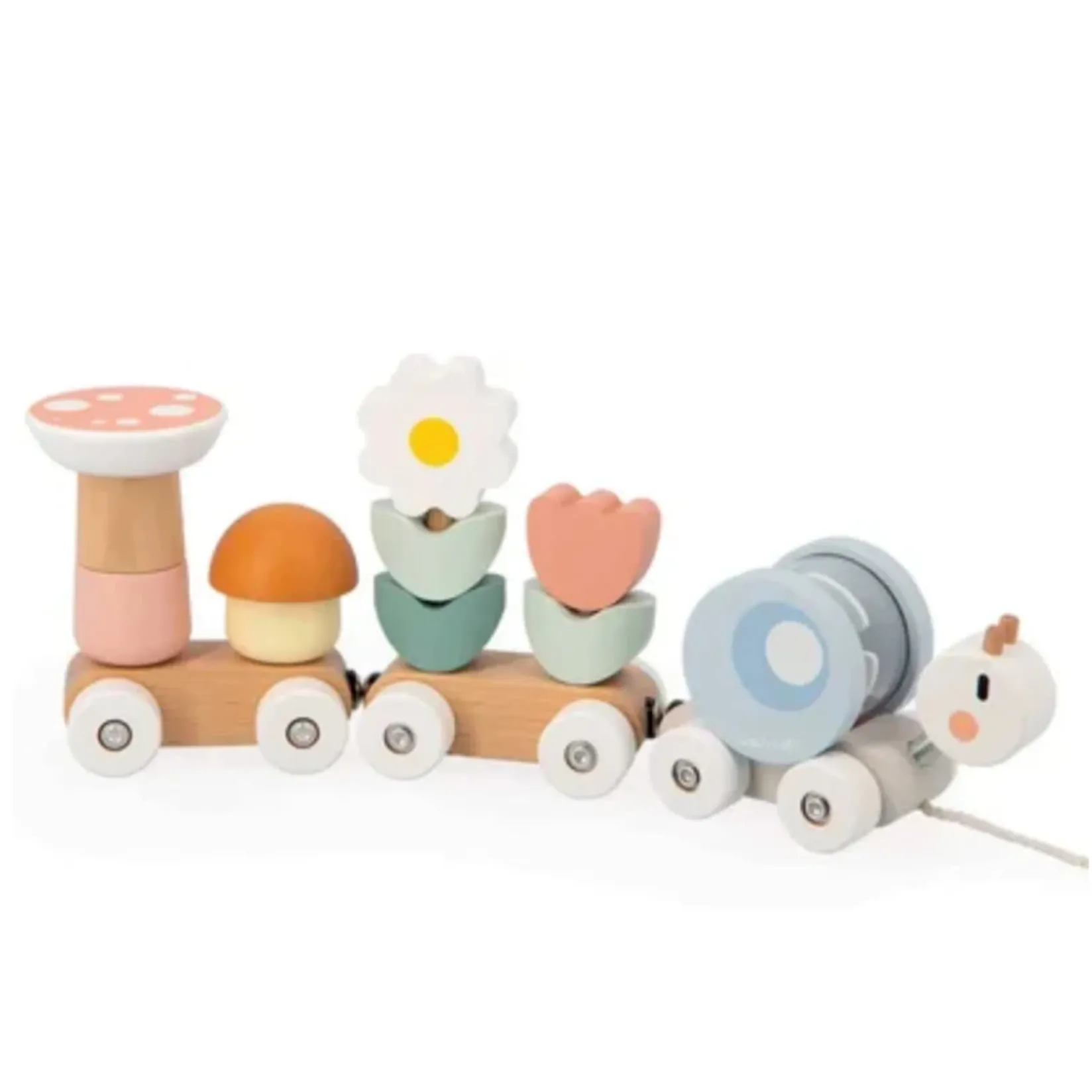 Discover the TRAIN SNAIL by Janod, an enchanting toy that inspires the imagination of the little ones and stimulates their motor development.