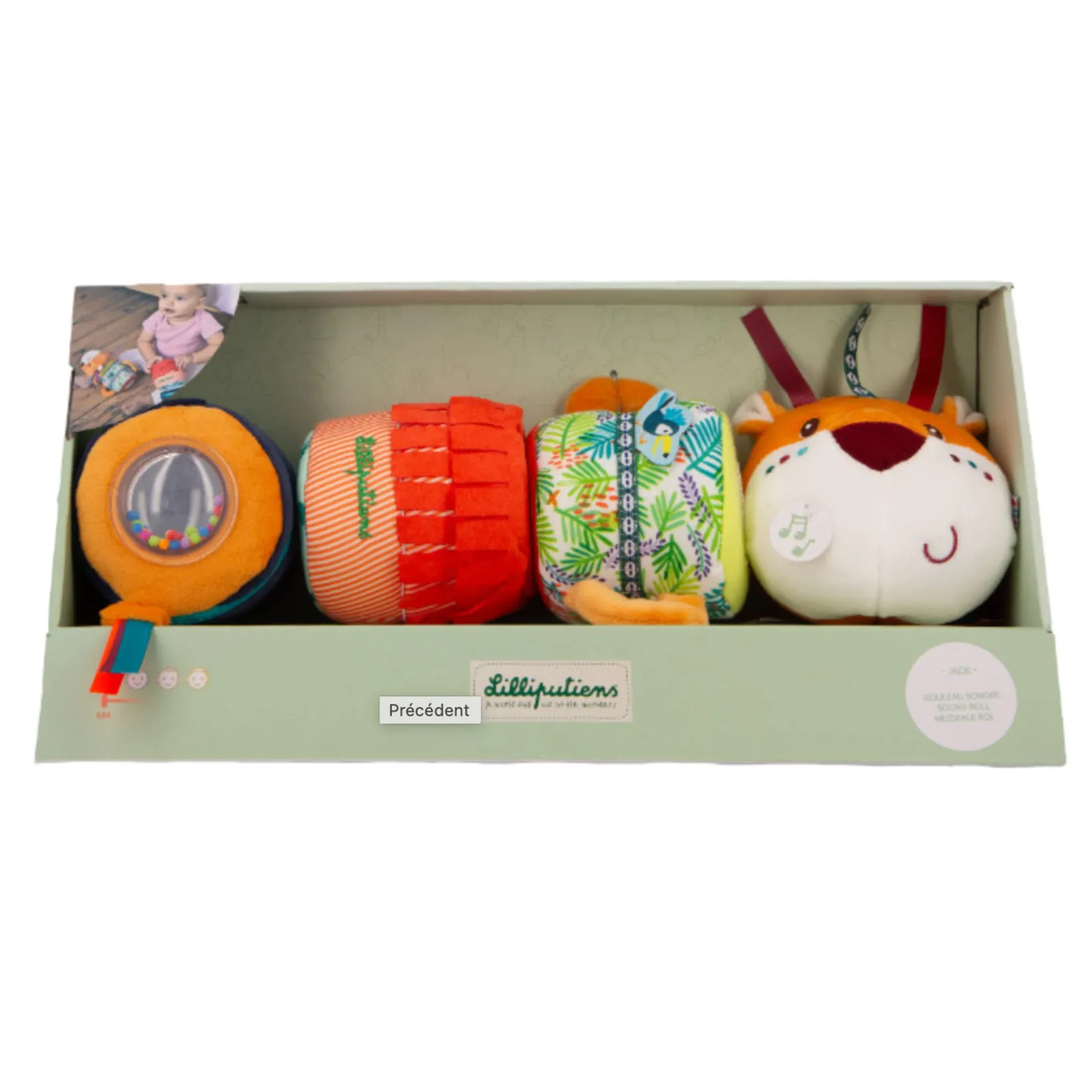 -With his sound roll, Jack the lion introduces baby to 4 different sounds and a variety of textures from 6 months old.