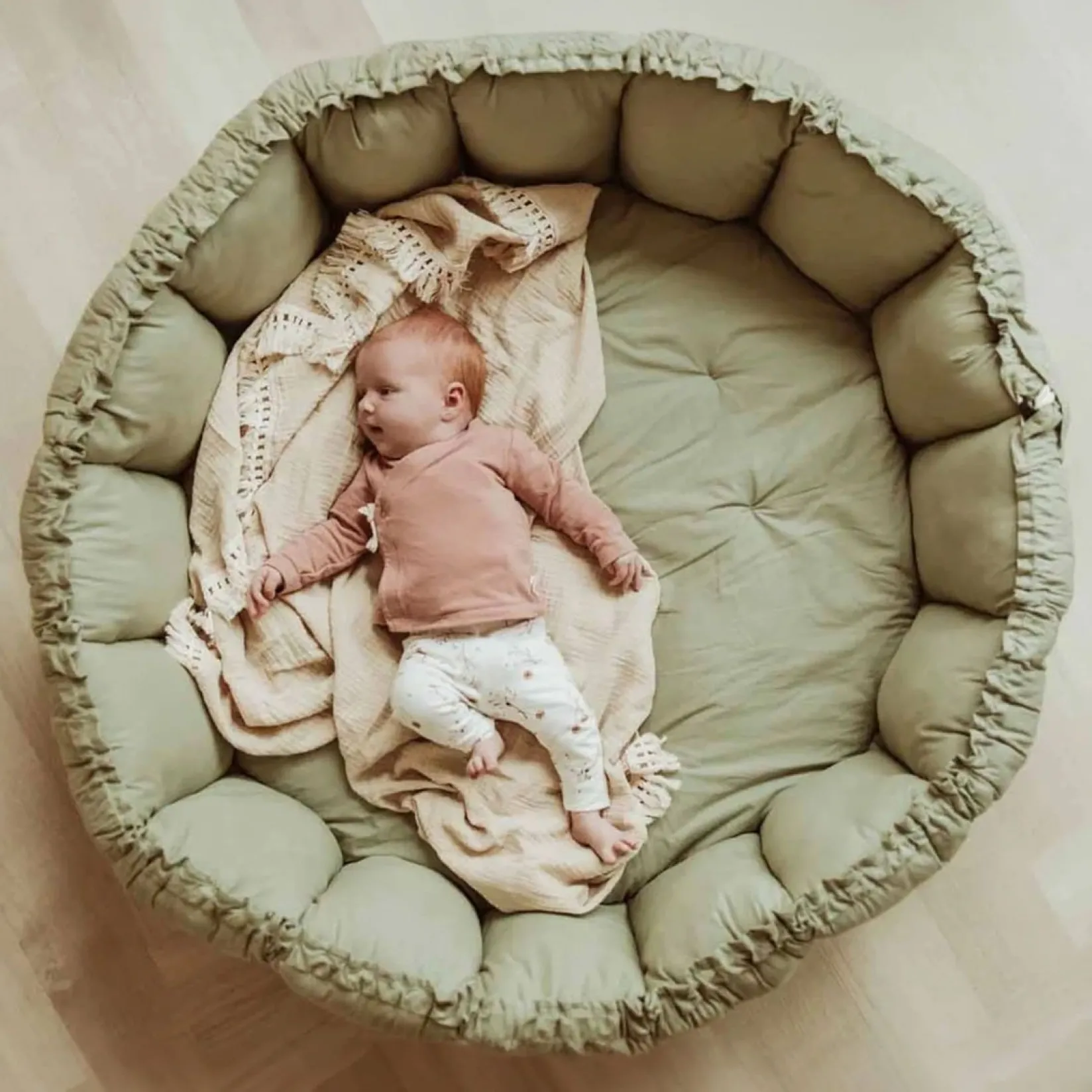 The Play&Go Bloom is a unique 3-in-1 playmat that grows with your child. When raised, the petals create a safe lounging crib for your baby, with soft bumpers to guard them. When in bloom, the playmat opens up and lowers the bumpers, creating a large, comfy play mat for babies. Perfect for tummy time, supervised play and exploration time. The Play&Go Bloom can also be put on display in a nursery or playroom, storing your child’s favourite toys and keeping everything in one place. The Bloom is lightweight and easy to move thanks to its separate carry straps. It provides a familiar space for your little one, no matter where you are.