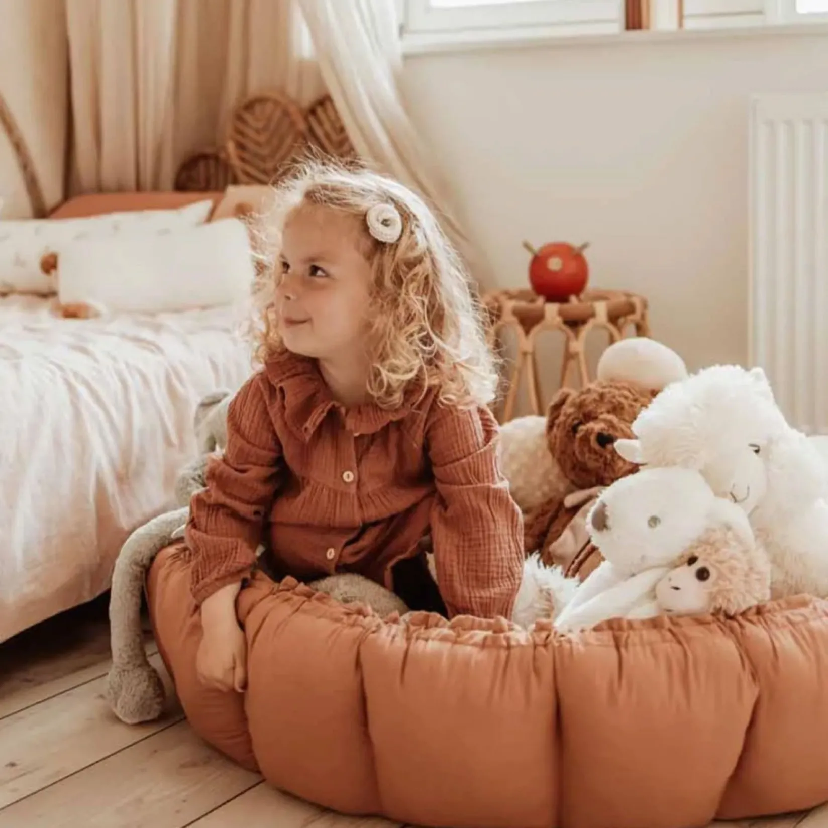 The Play&Go Bloom is a unique 3-in-1 playmat that grows with your child. When raised, the petals create a safe lounging crib for your baby, with soft bumpers to guard them. When in bloom, the playmat opens up and lowers the bumpers, creating a large, comfy play mat for babies. Perfect for tummy time, supervised play and exploration time. The Play&Go Bloom can also be put on display in a nursery or playroom, storing your child’s favourite toys and keeping everything in one place. The Bloom is lightweight and easy to move thanks to its separate carry straps. It provides a familiar space for your little one, no matter where you are.