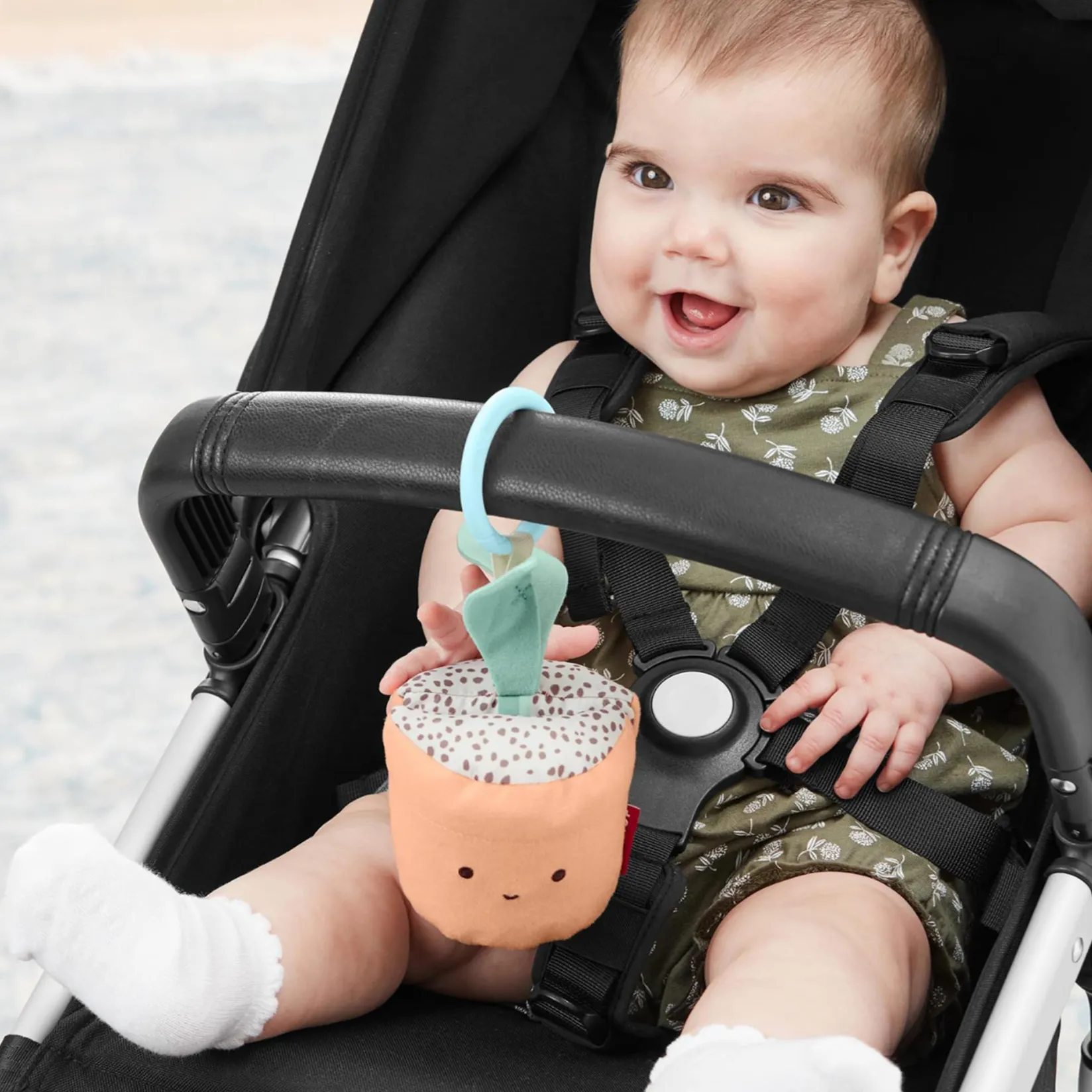 Budding gardeners will love to explore our engaging potted plant baby stroller toy. Featuring an open & close peek-a-boo design, inside baby will find (surprise!) a rattle “bulb” plant. A plush textured exterior and crinkle leaves add multisensory fun—at home and on-the-go.