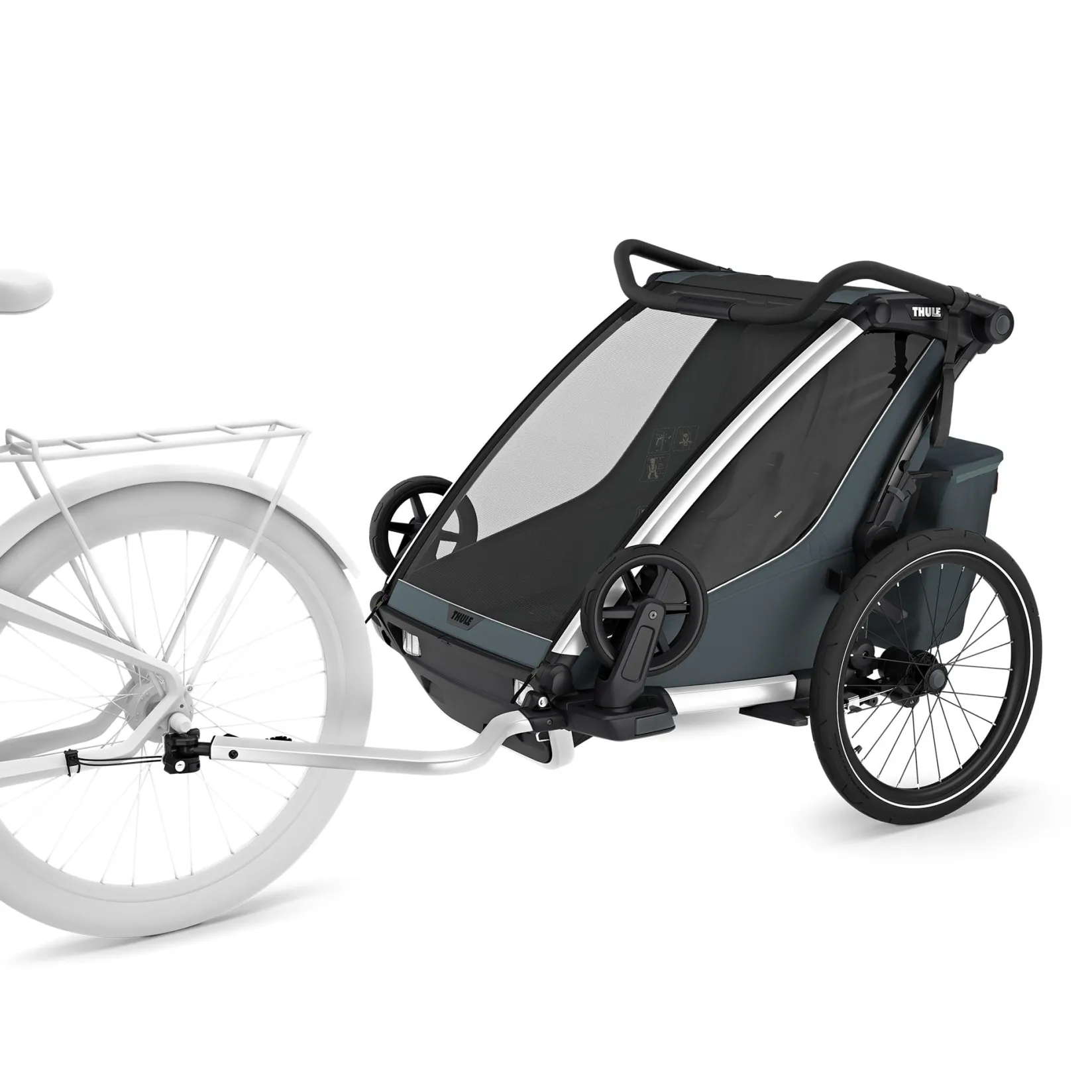 Made for daily commutes, Thule Chariot Cross 2 double is a robust and safe trailer for heavy use in all conditions. It lets you experience easy transitions between cycling and strolling – a quick, one-handed wheel rotation turns the bike trailer into a stroller in seconds.