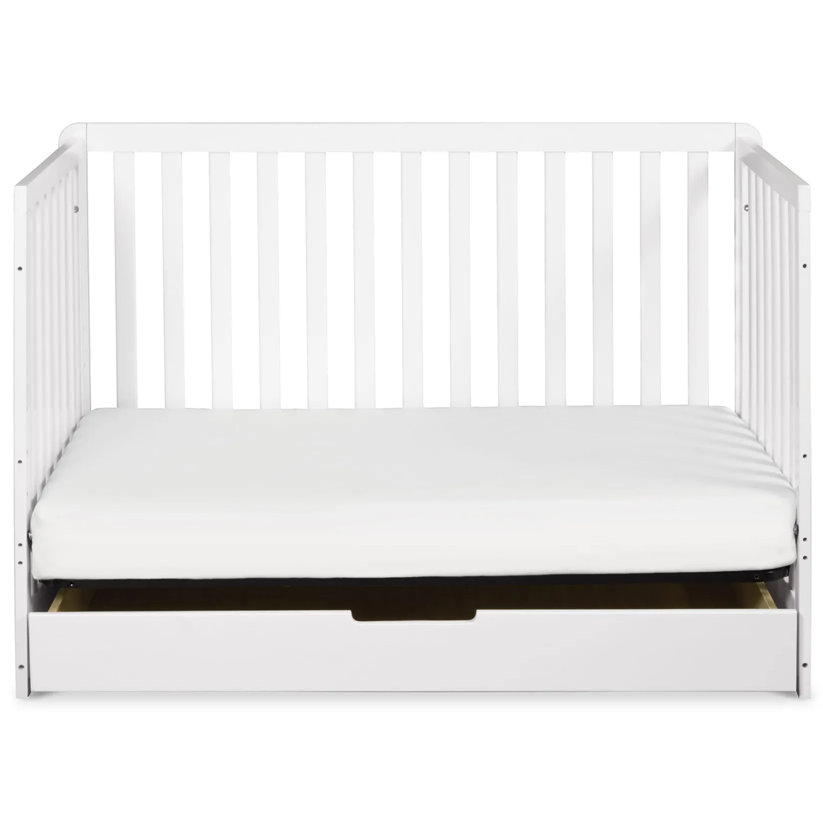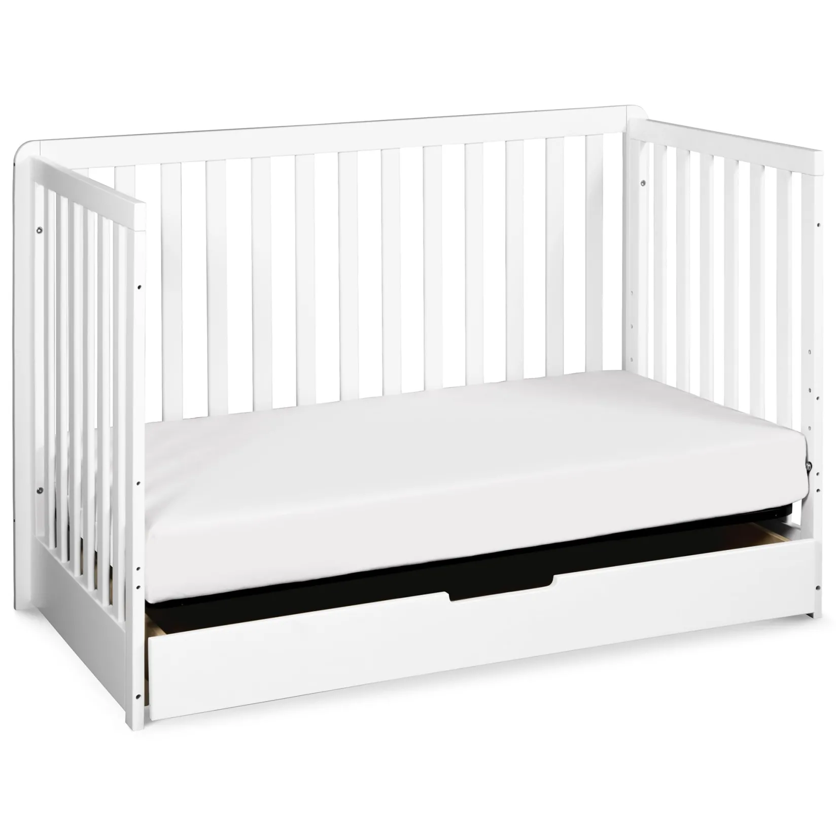 The Colby Crib with Spacious Trundle Drawer features clean lines and a spacious, built-in trundle for a beautiful and practical nursery. Converts to a toddler bed, day bed, and full-size bed for use long past the nursery years.