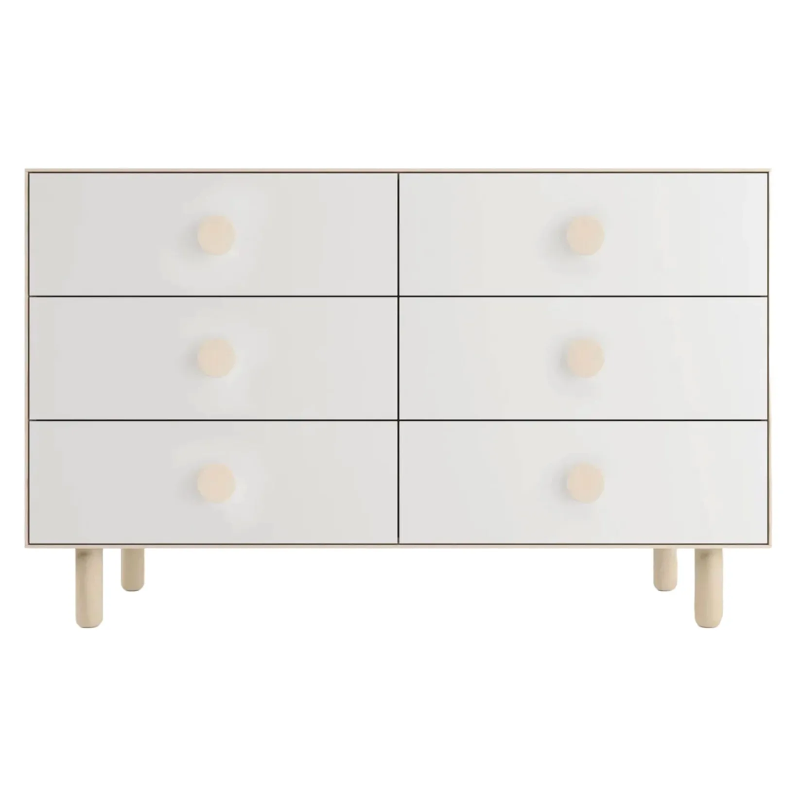Featuring statement-making oversized pulls, the Oeuf Dot 6 Drawer Dresser is built to last and will grow with your child for many years to come. With minimal finishing required, the body of the dresser arrives fully assembled, ensuring its quality construction. Six deep drawers provide generous storage.
