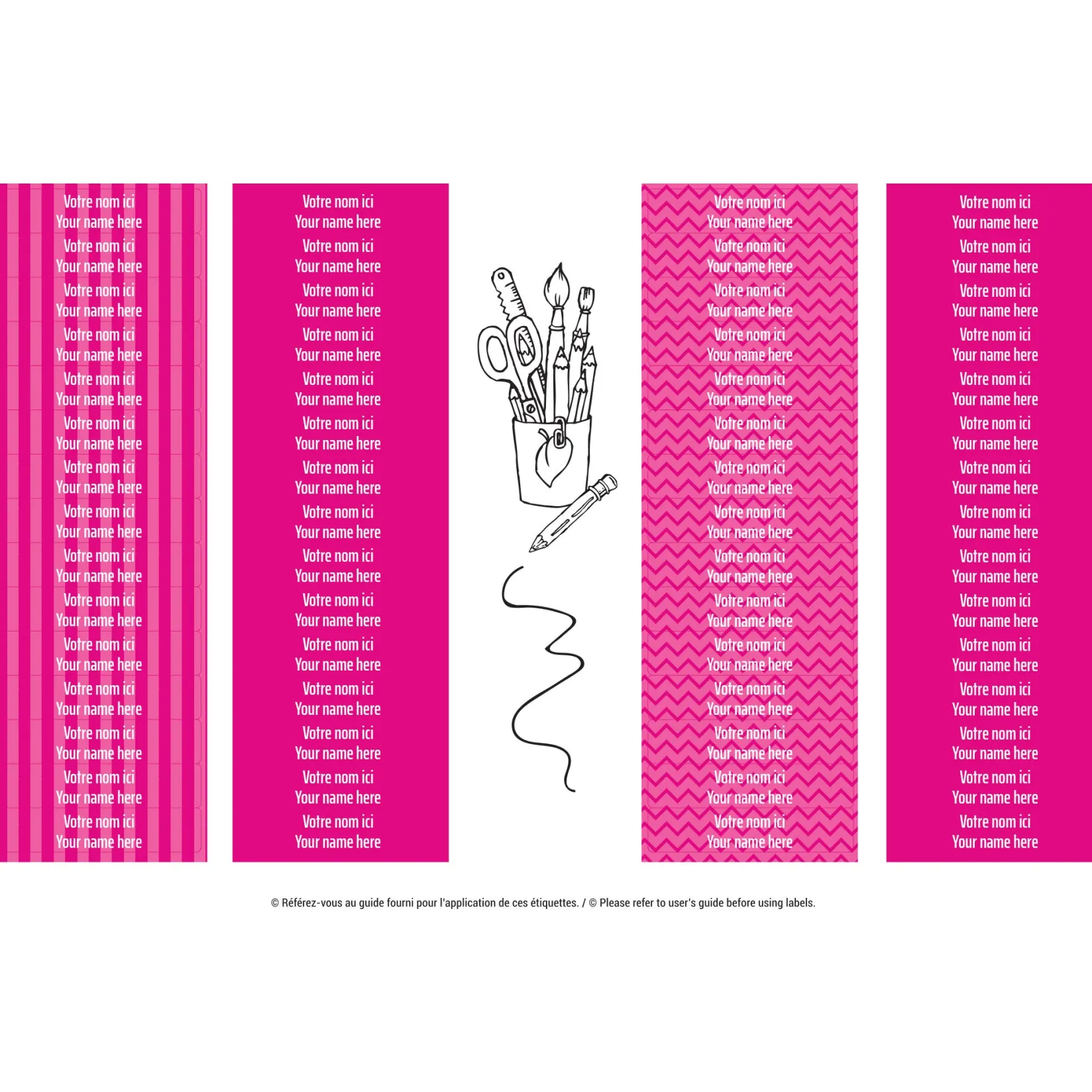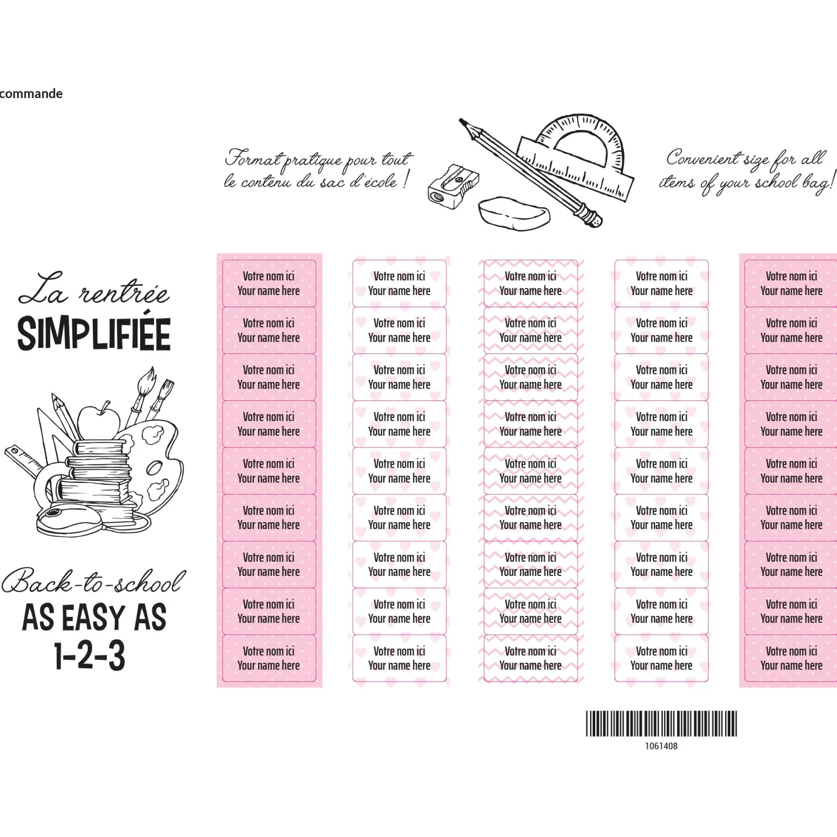 The set of personalized sticky labels Clément becomes your best ally for the quick identification of your family’s personal items. In a few seconds, young and old will be able to recognize their school items, lunchbox items, sports equipment, shoes, clothes, etc. Waterproof and durable, the labels are not afraid of freezing, water, heat, or steam. They are resistant to the microwave, refrigerator, freezer, dishwasher, washing machine, and dryer.