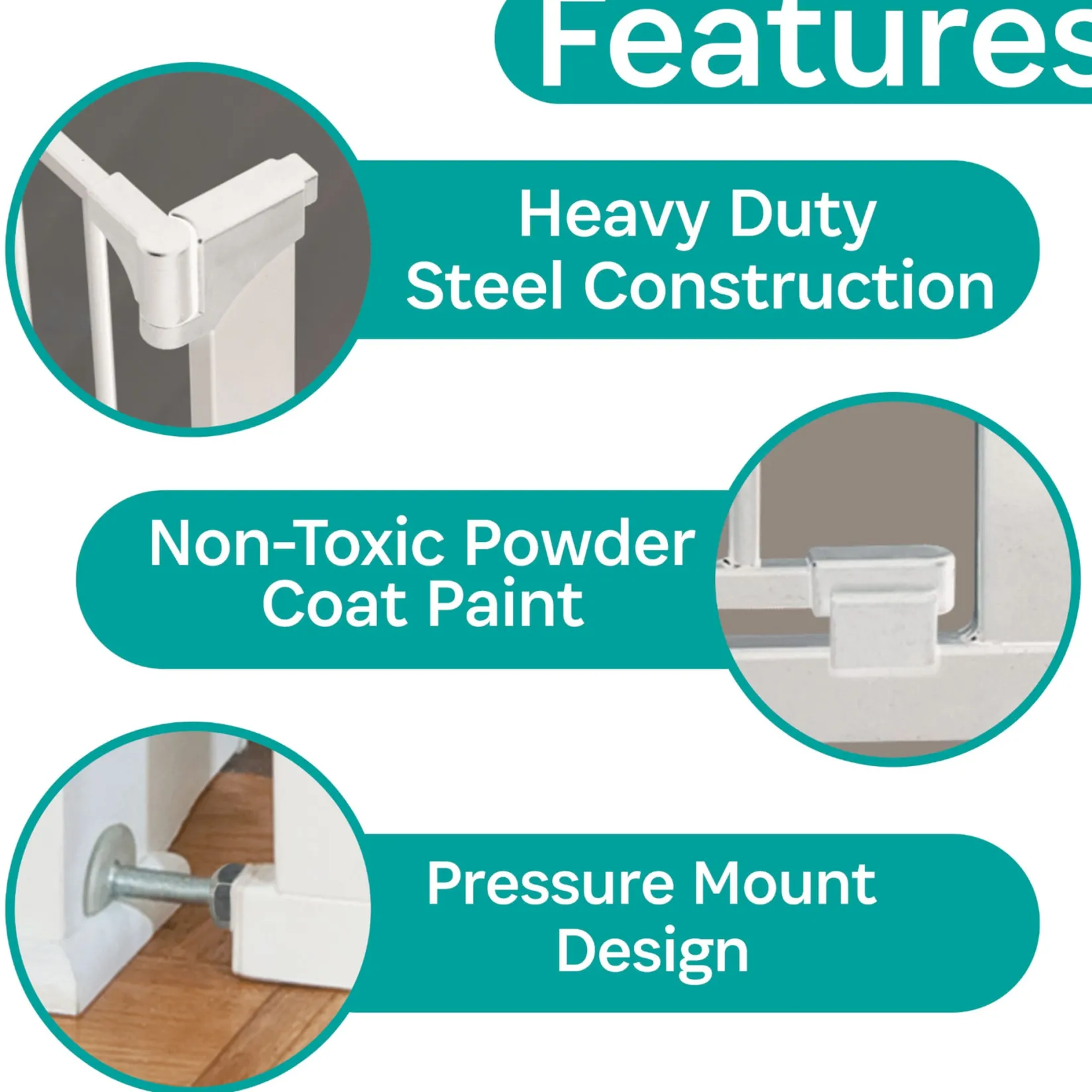 The KidCo® Gateway® Pressure Plus is the ideal solution for securing heavily traveled doorways and room openings. As a pressure-mounted gate, it offers maximum safety without the need for drilling into woodwork or drywall, making it perfect for renters or anyone looking to avoid permanent alterations.