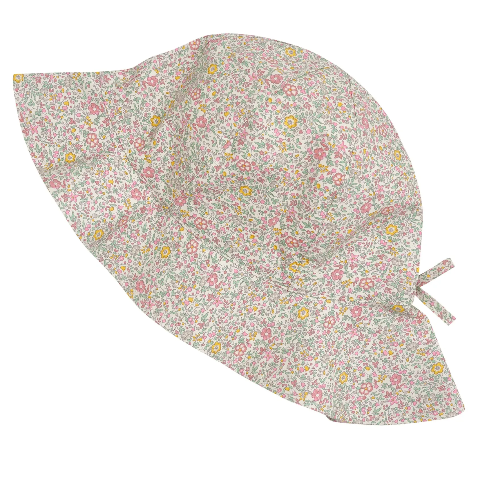 Cute sun hat with liberty print from HUTTEliHUT. The hat is made of 100% cotton with a solid cotton lining. A cord runs through the middle of the hat, forming a bow at the back and allowing for adjustment to the child’s individual head shape. Extra length at the back. Perfect for providing some shade on a warm summer day. Made with Liberty Fabric. Certified acc. to OEKO-TEX® STANDARD 100 Cert. No. 2276-364 DTI