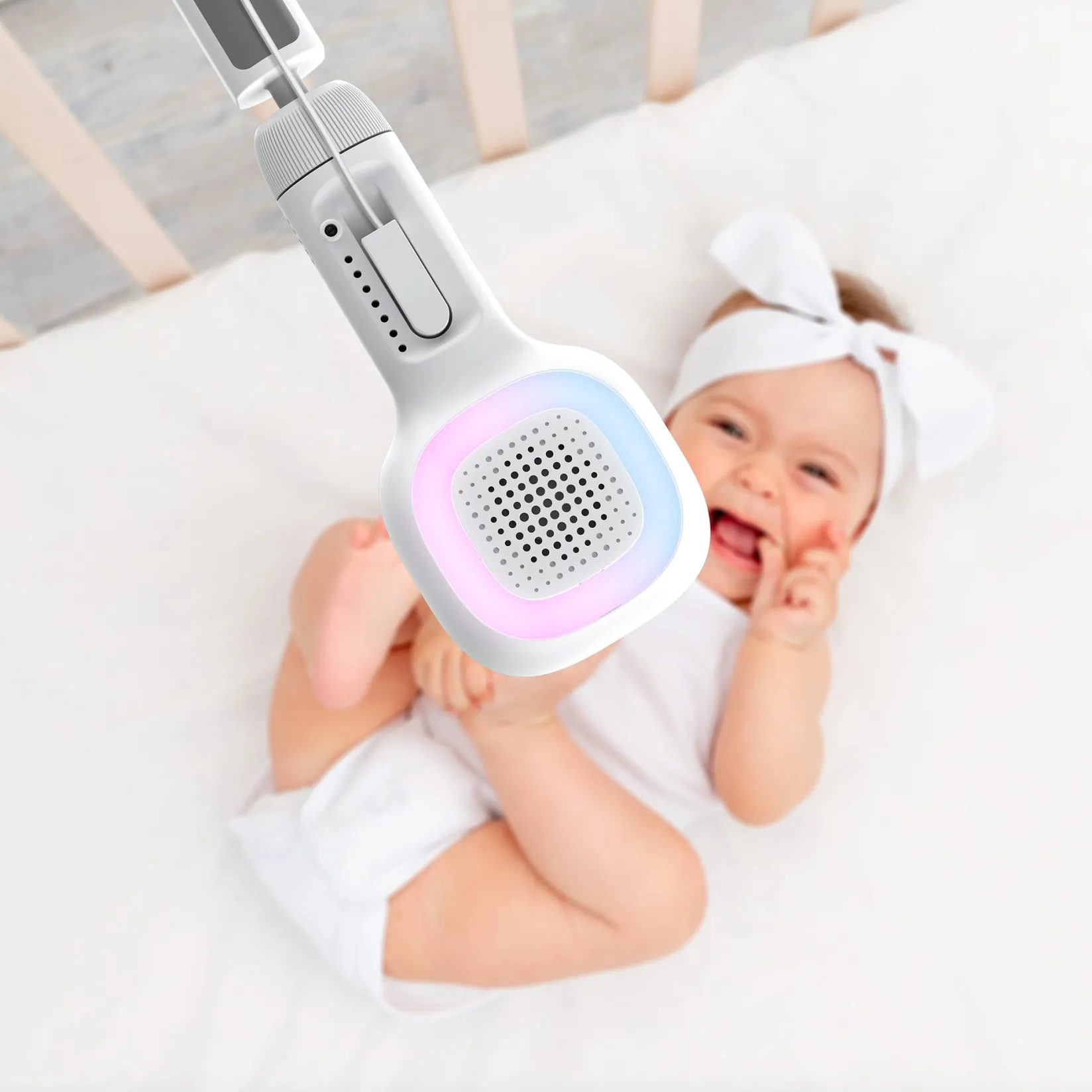 Create a soothing sleep environment with the 7-color night light and the preloaded library of soothing sounds, lullabiesand stories played through the built-in speakers. Combine these features with the Sleep Trainer to establish healthy sleep routines.