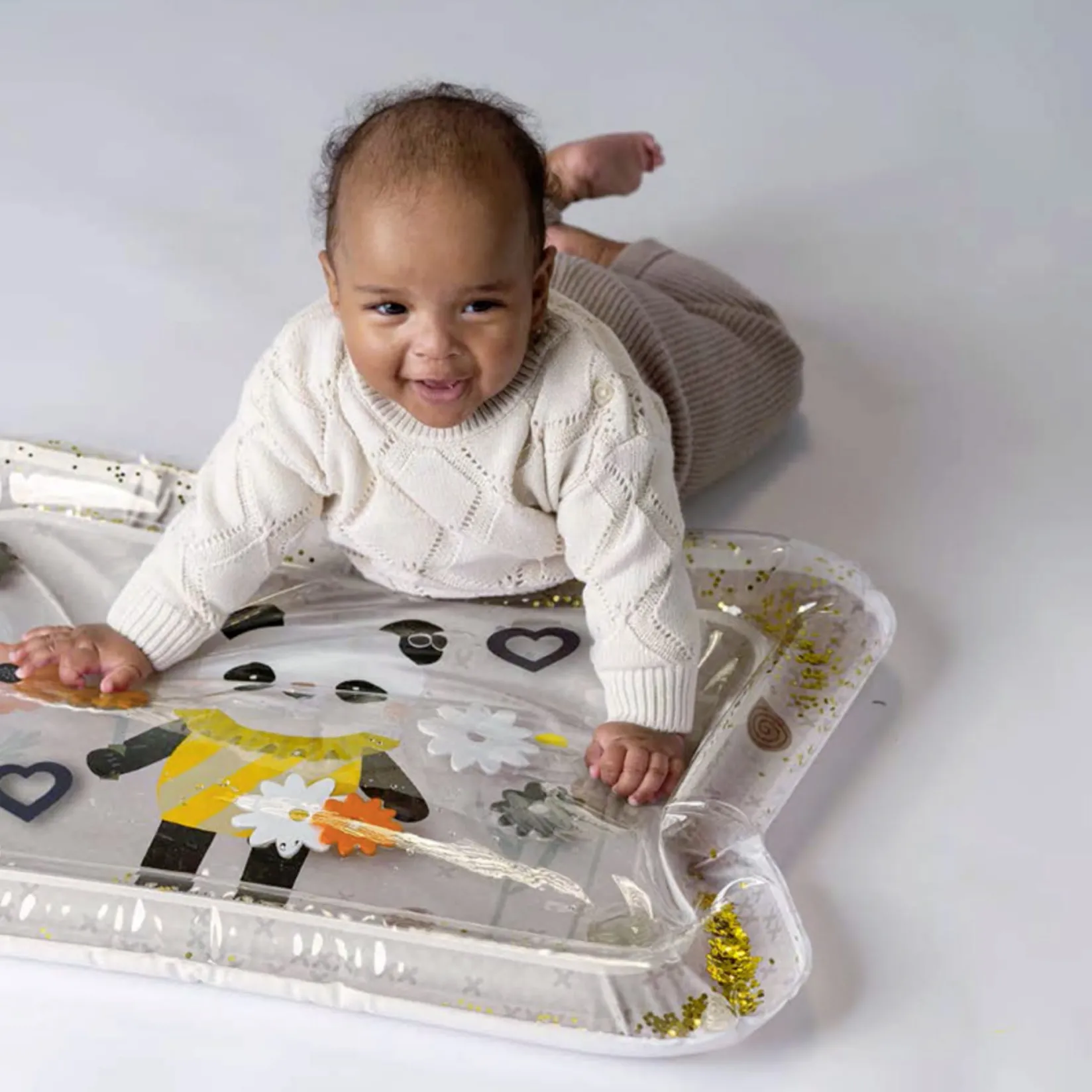Splash into fun with our Panda Bloom Water Mats! These soft, squishy mats are filled with water and floating toys, turning tummy time into an exciting adventure. Babies build muscles and explore bright, playful designs. As babies reach floating toys, they also enhance hand-eye coordination and fine motor skills. Easy to clean and perfect for babies, our mats make every moment of playtime a sensory-filled, fun-learning experience!